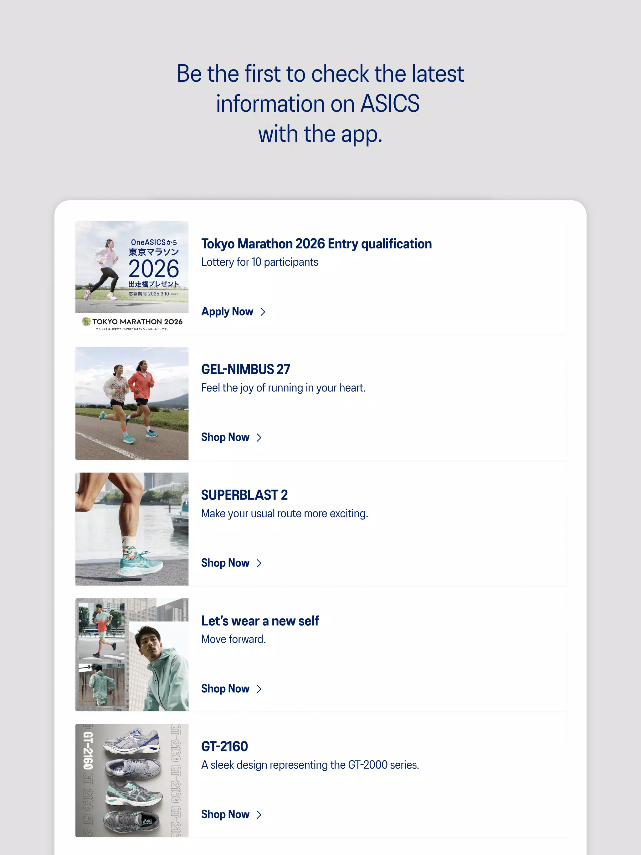 Download the official ASICS app now to unlock exclusive benefits, earn rewards, and enjoy a seamless shopping experience. Stay ahead with the latest product information and make your shopping more convenient with just a few taps on your device. Don't miss out on the opportunity to enhance your ASICS shopping experience – download the app today for free.