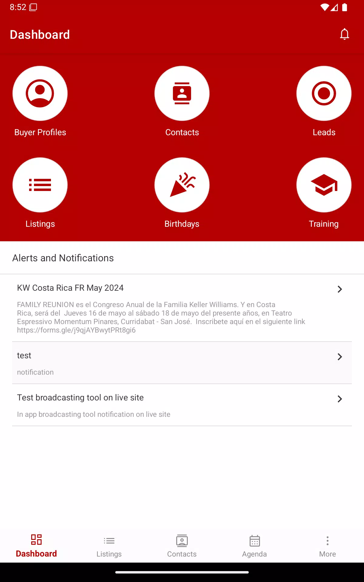 Push notifications for New Leads and Listing Quality Assurance updates.