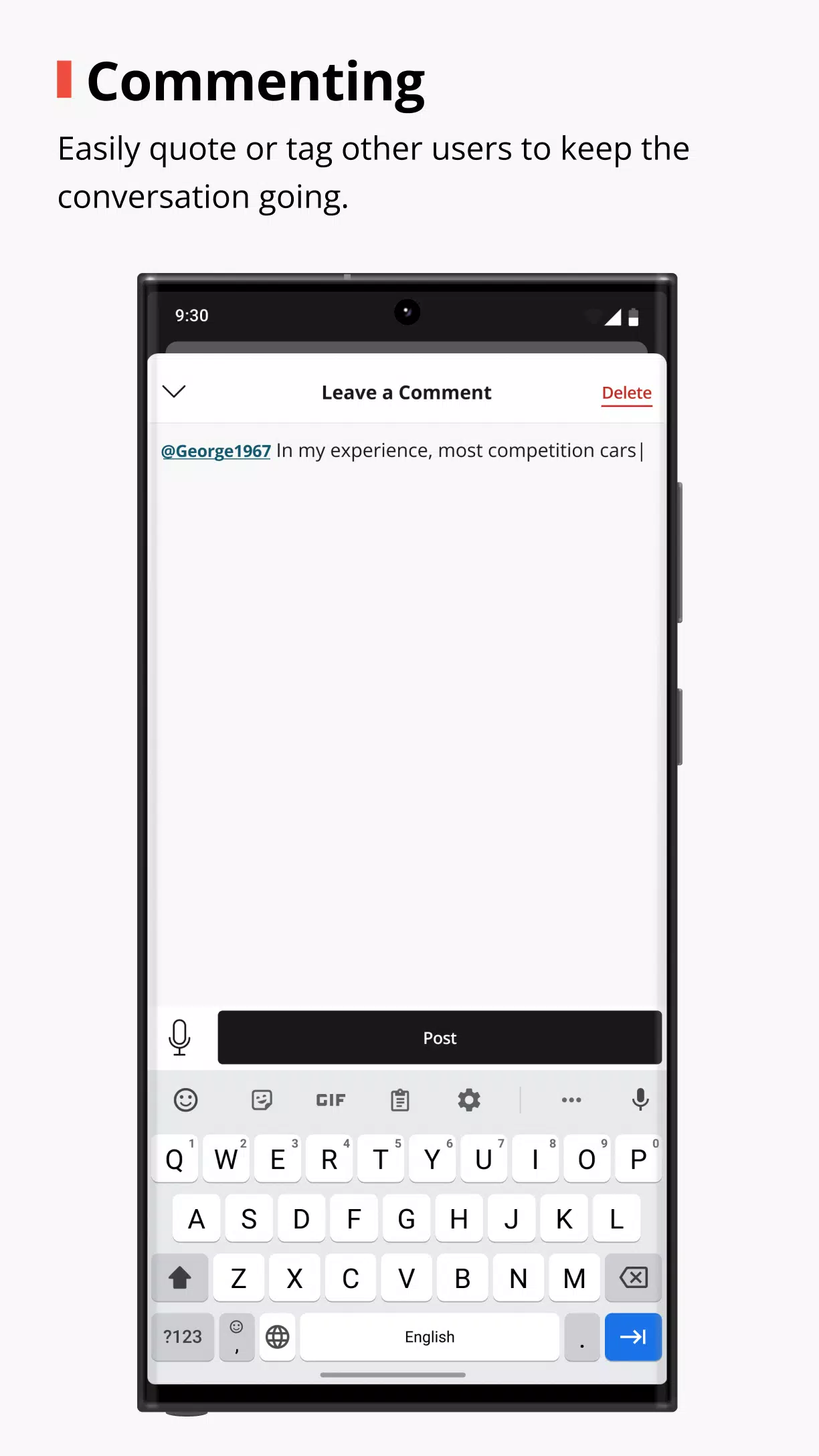 > Comment threads: Engage with the knowledgeable community by tagging other users and keeping the conversation going.