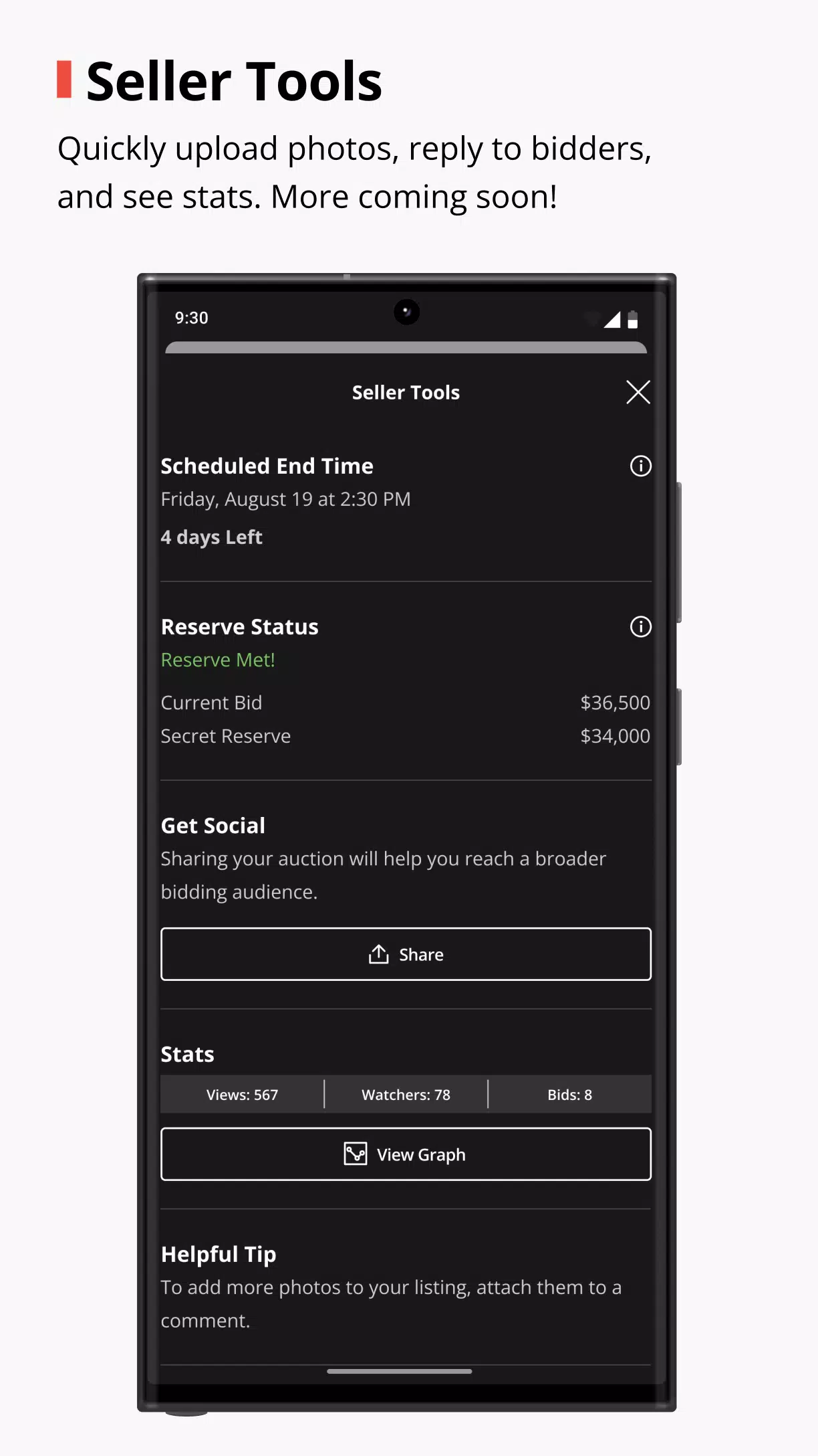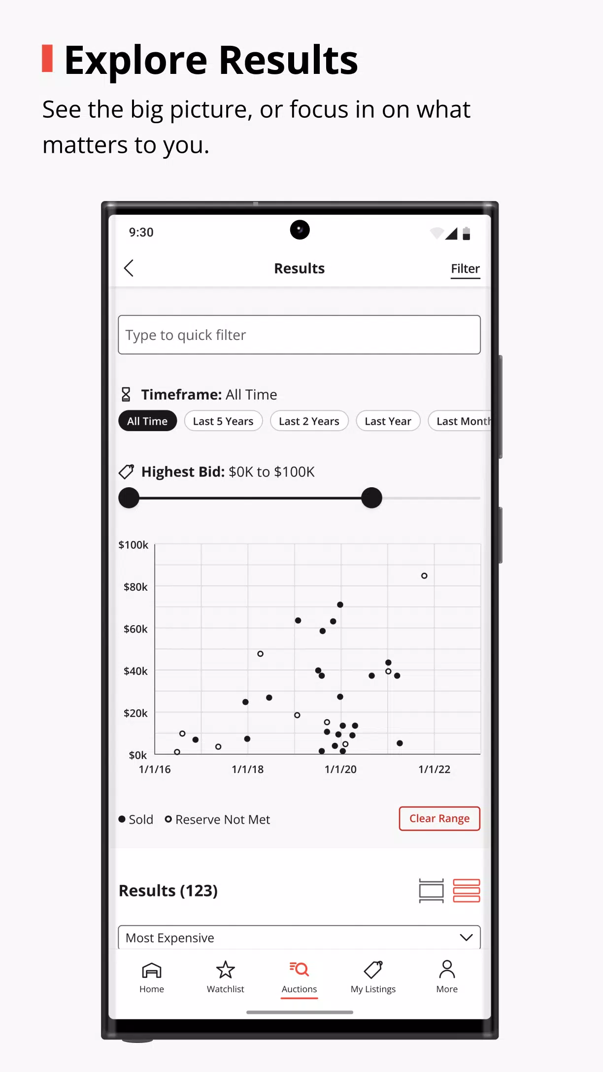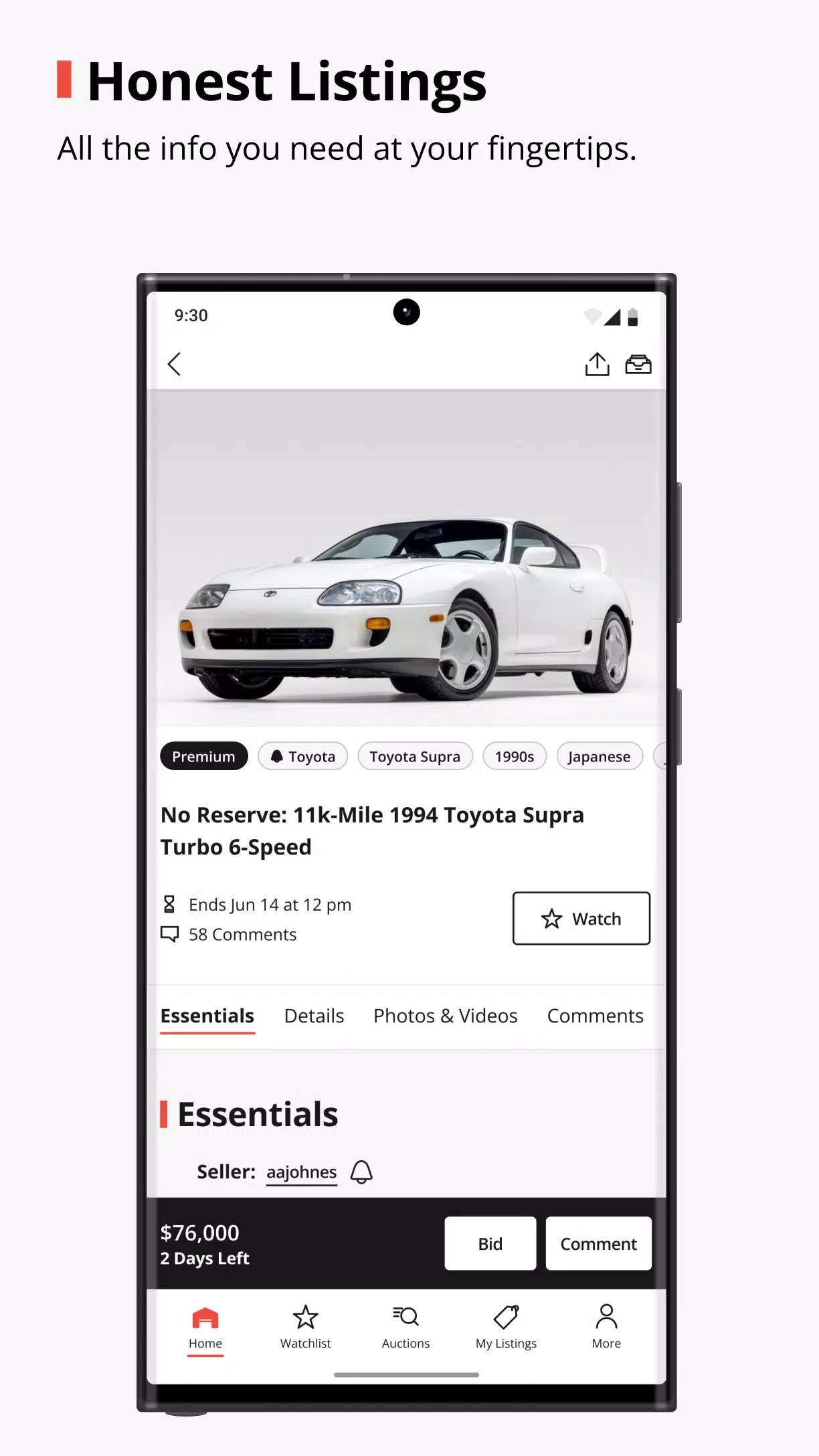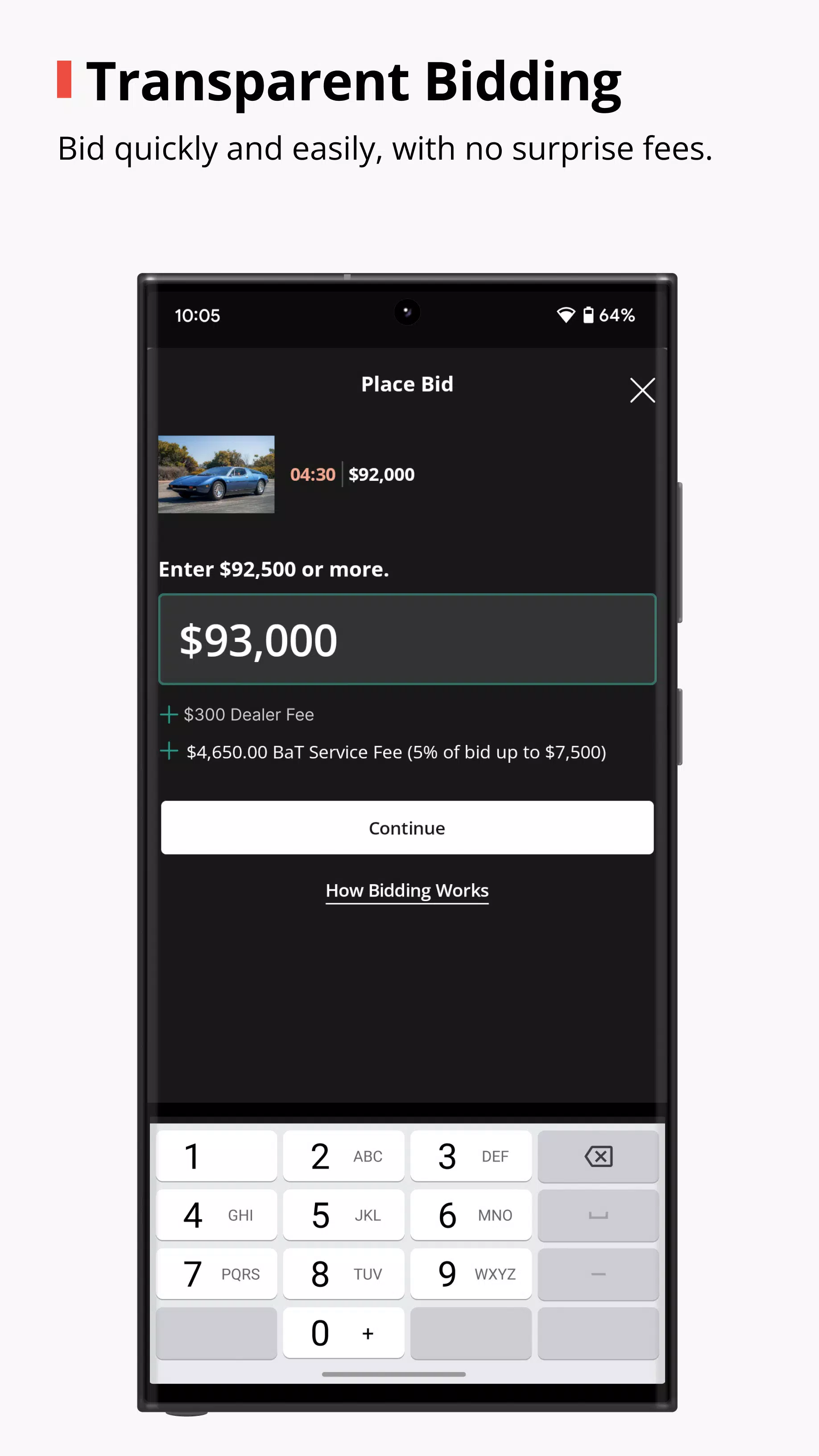> Discover and browse: Easily find trending vehicles, see what’s ending soon, and watch bids roll in on the Discover page.