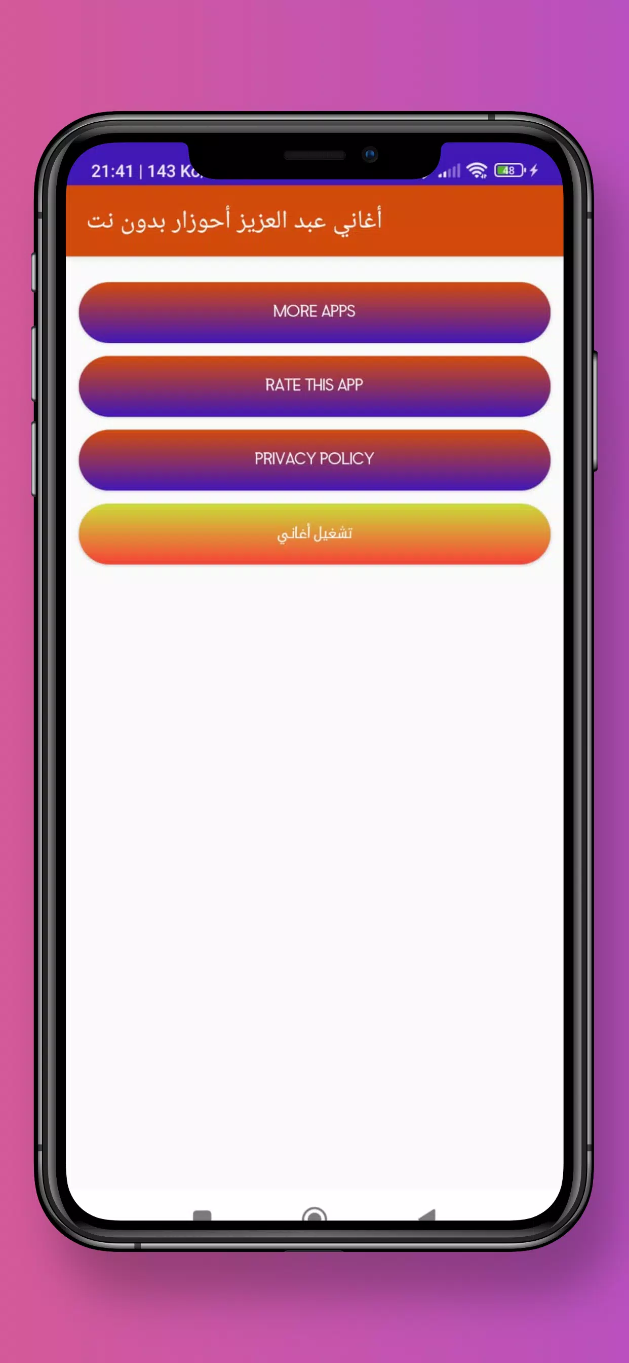 Elevate your music experience with the “أغاني عبد عزيز أحوزار بدون نت” application, offering offline listening, high sound quality, continuous updates, background play, and an ad-free experience. Explore a wide range of songs by the artist and enjoy a seamless music experience wherever you are. Download the app now to enjoy the beautiful songs of Abdel Aziz Ahouzar at any time, without the need for an internet connection.