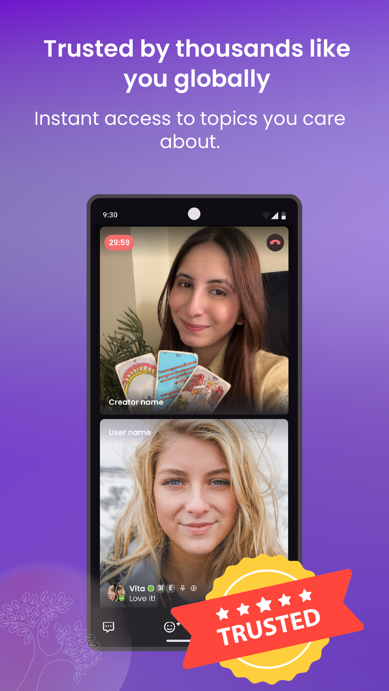Coto is the ultimate destination for live streaming consultations in various areas such as Tarot, Astrology, mental health, relationships, and energy healing, creating a safe and supportive space for individuals, especially women, seeking immediate assistance and long-term guidance. With a network of over 1,000 accredited professionals specializing in relationship counseling, mental health therapies, emotional healing, astrological guidance, holistic wellness practices, and more, Coto ensures a reliable platform for individuals to navigate life's challenges and thrive. Enjoy your first call for free on any topic, pay only when satisfied, and access around-the-clock support in a secure and judgment-free environment. Unlock a world of premier services, diverse consultation formats, and a trusted community at Coto.