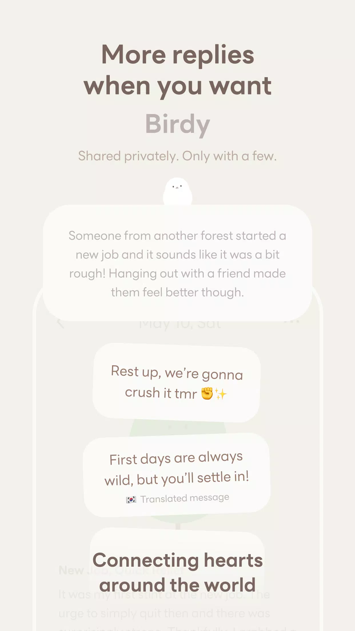 * Mind Bird Feature: Connect with others by sending anonymous messages through the mind bird, fostering empathy and receiving heartfelt replies.
