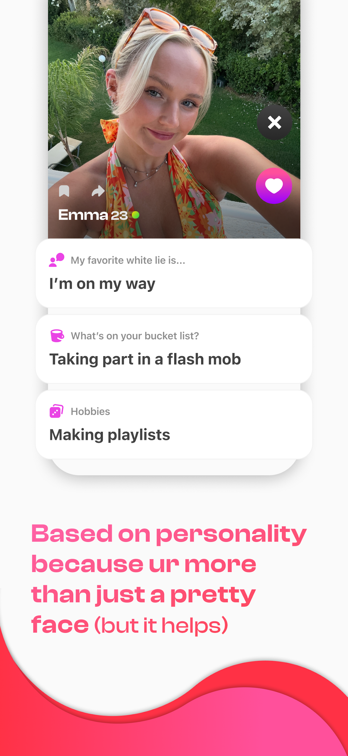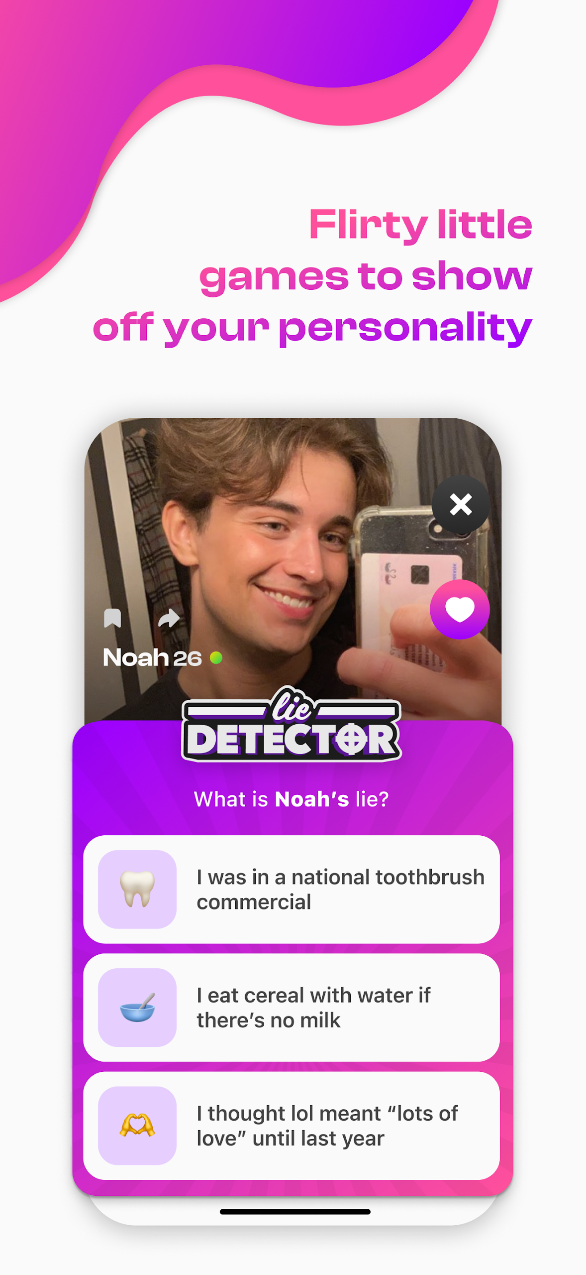 - Playful Interaction: Engage in the Guessary game to discover fun facts about potential matches, including their quirks. This interactive element adds a sense of playfulness to the dating experience.