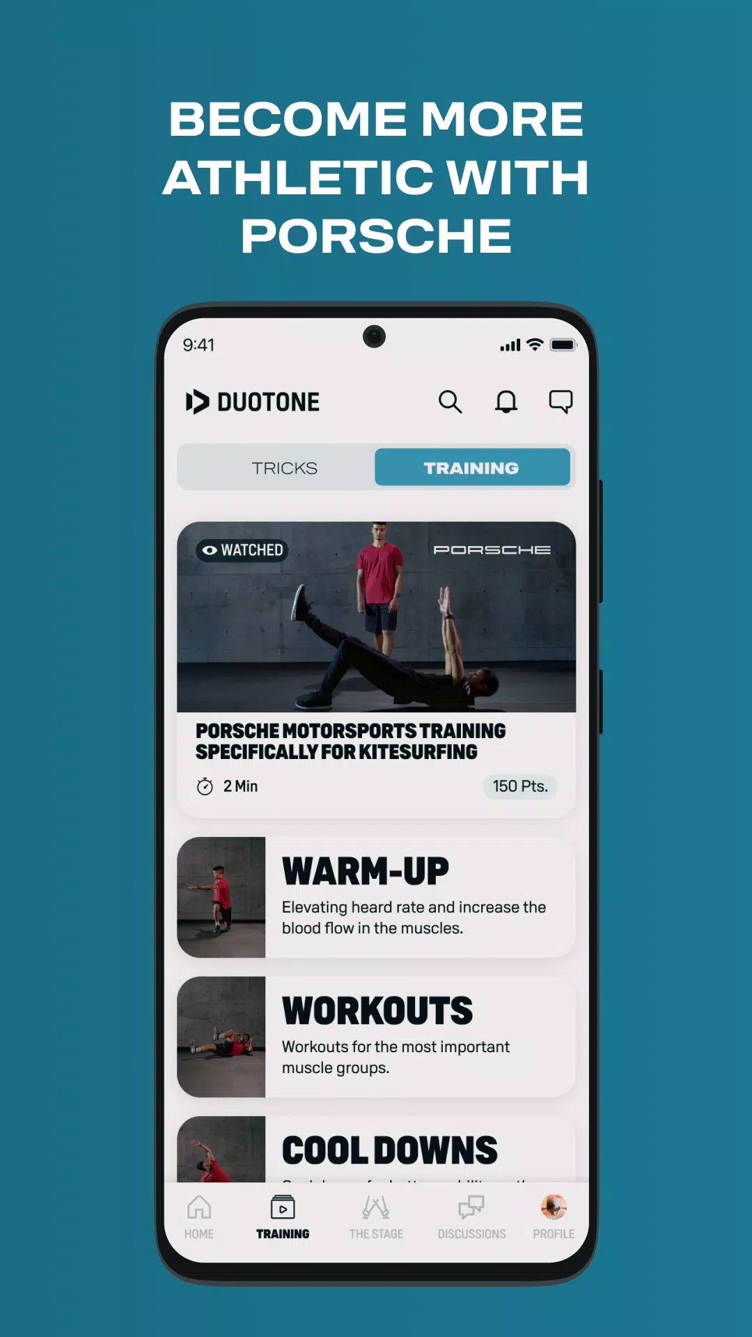 Work on strength and mobility: Utilize the Porsche Motorsport workouts provided in the app to improve your athletic abilities and reduce the risk of injuries during kiteboarding sessions.