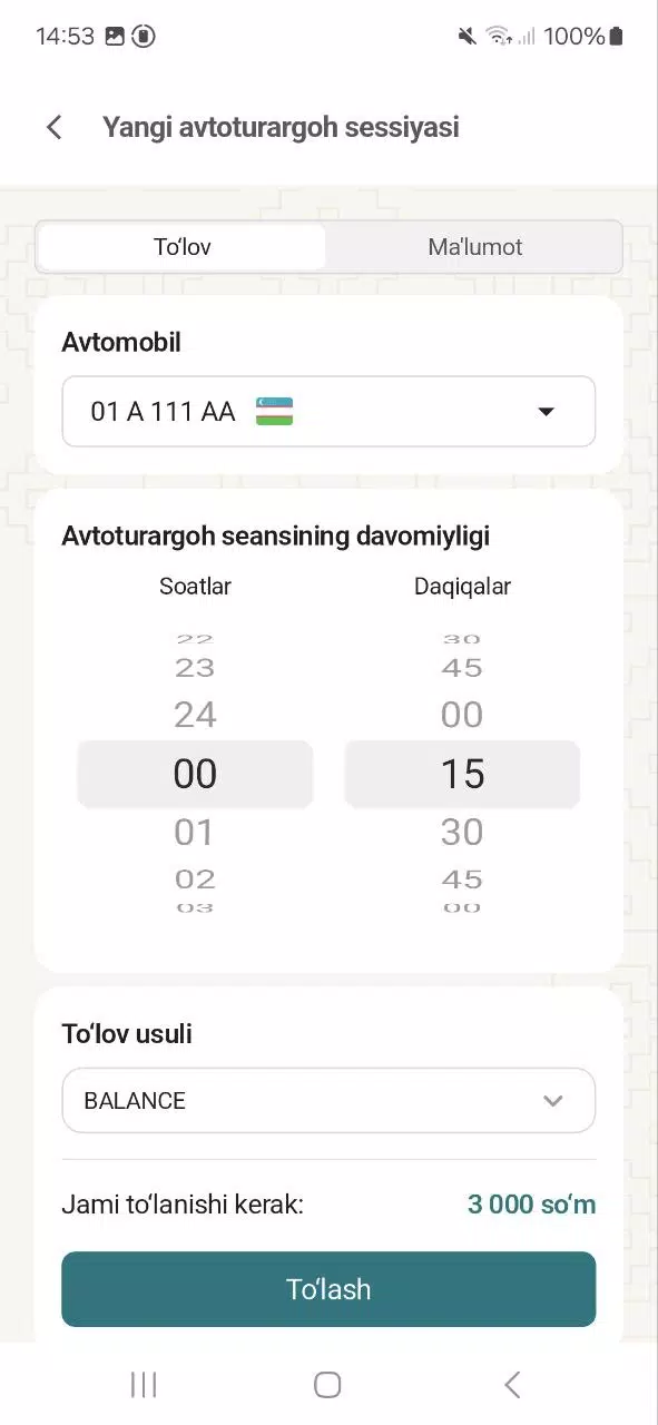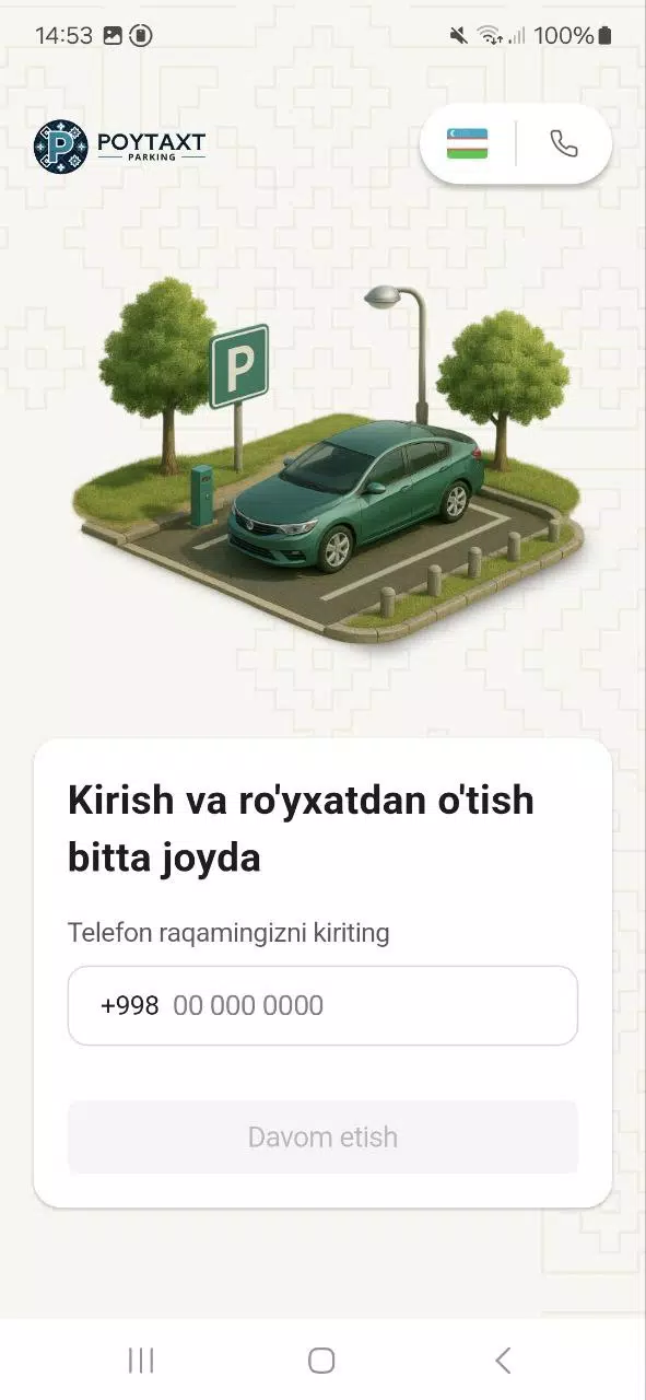 Introducing POYTAXT PARKING - the official app for convenient and quick parking payment in the city. Easily register in seconds with your phone number and a short SMS code. This app features an interactive map with parking locations, search by address or number, adding multiple vehicles with license plate numbers, topping up your parking account with popular payment systems, managing parking sessions with ease, paying for parking directly through the app or payment system, detailed parking and transaction history at your fingertips, and support for three languages: Uzbek, Russian, and English. Save time, manage parking effortlessly, and take full control of your parking right from your mobile device.
