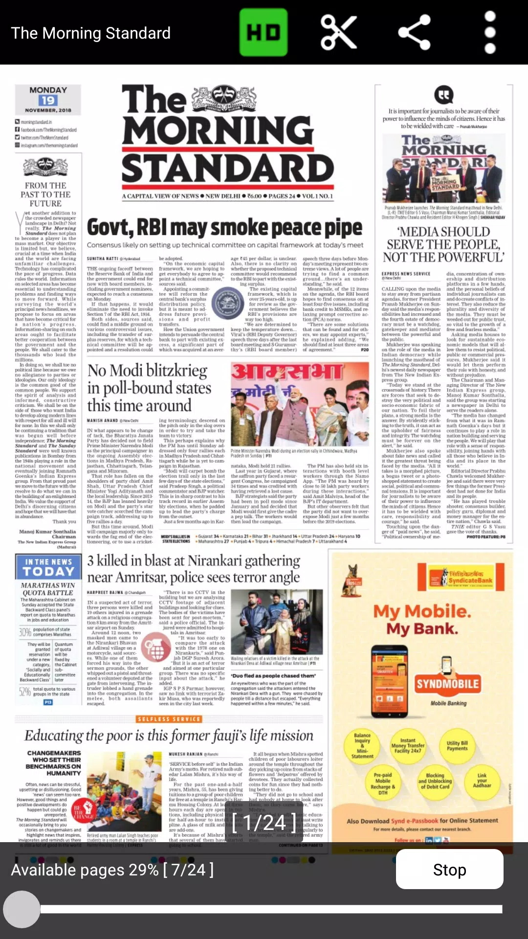 Stay up to date with the latest news and magazine articles with The Morning Standard app from The New Indian Express. Published by Express Publications (Madurai) Limited, this app allows you to access English language news from 21 centers in South India. With features like automatic issue refresh, pinch zoom-in, and offline reading capability, The Morning Standard app makes it easy to stay informed and entertained while on the go. Download now on your Android mobile or tablet to enjoy a seamless reading experience wherever you are. Experience the convenience and quality journalism of The Morning Standard today.