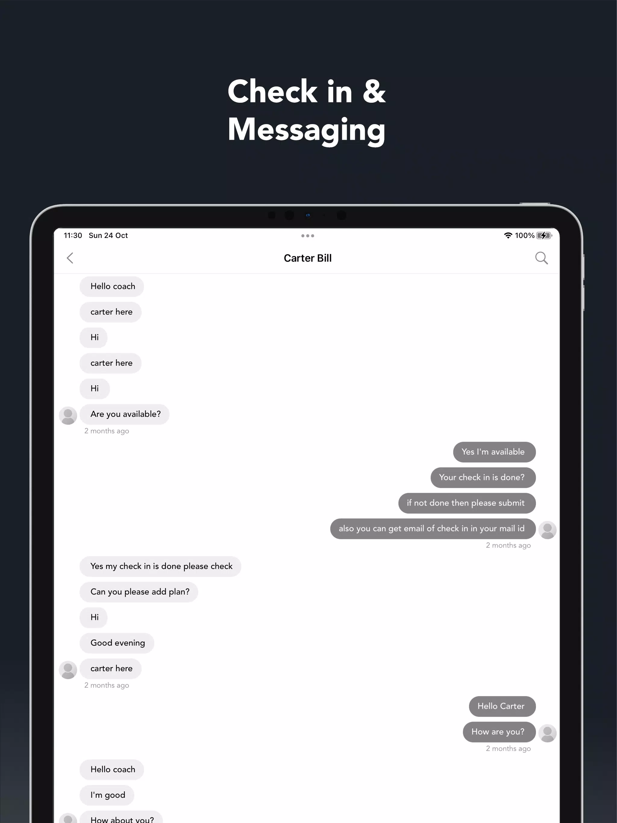- Messaging: Stay connected with your coach through instant messaging for quick updates, questions, and motivation.