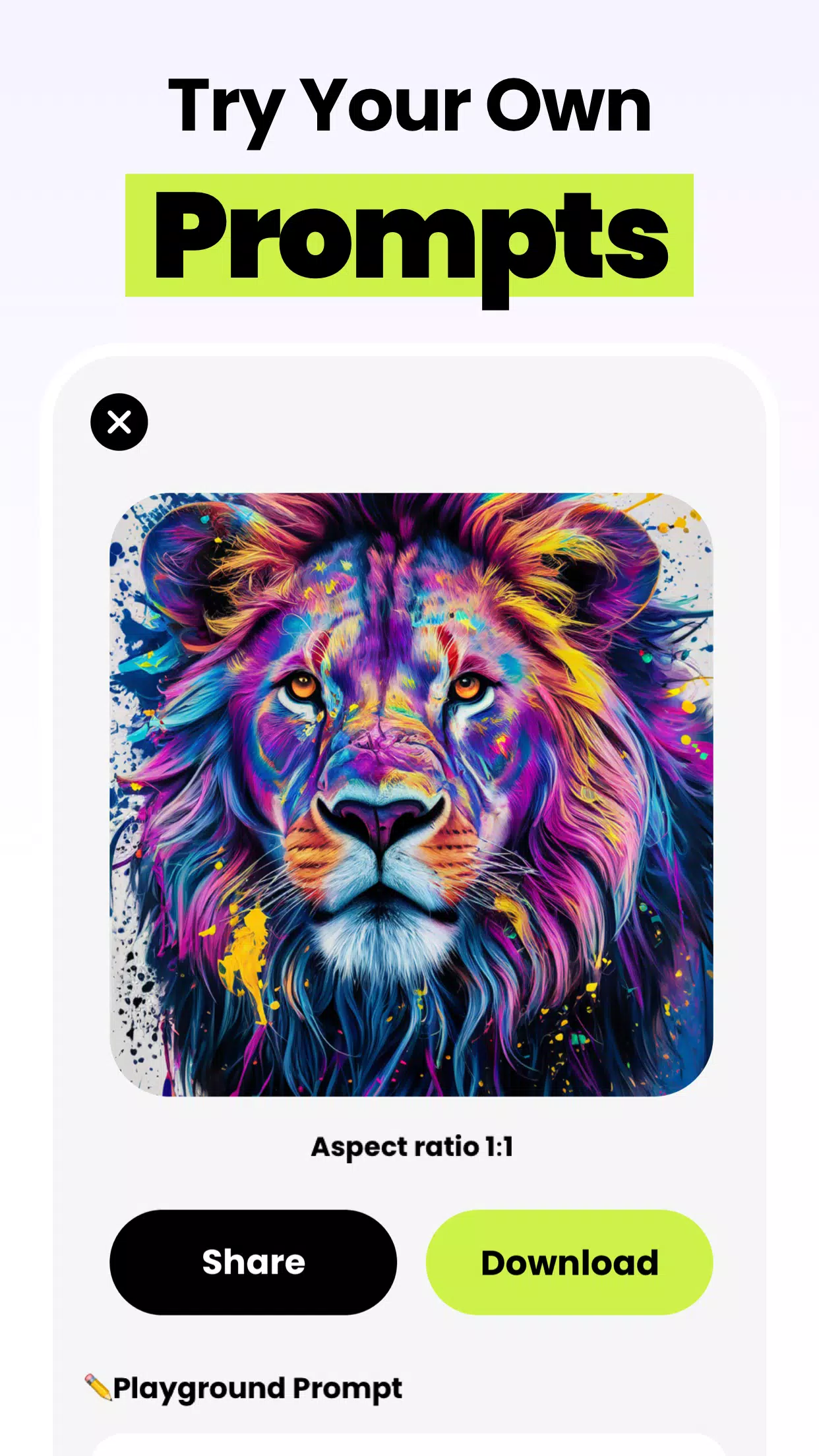 Elevate your creativity with Playground: Image Generator AI, a cutting-edge app that transforms your text into stunning AI-generated artwork in MidJourney or Stable Diffusion styles. Simply describe your vision, and watch as our advanced AI technology brings it to life in one-of-a-kind images. Whether you're an artist seeking inspiration or just love experimenting with new forms of expression, Playground: Image Generator AI streamlines the process and makes it fun. Explore the endless possibilities of AI-generated art by downloading the app today and dive into a world of creativity at your fingertips. Don't forget to share your feedback with us at [email protected].