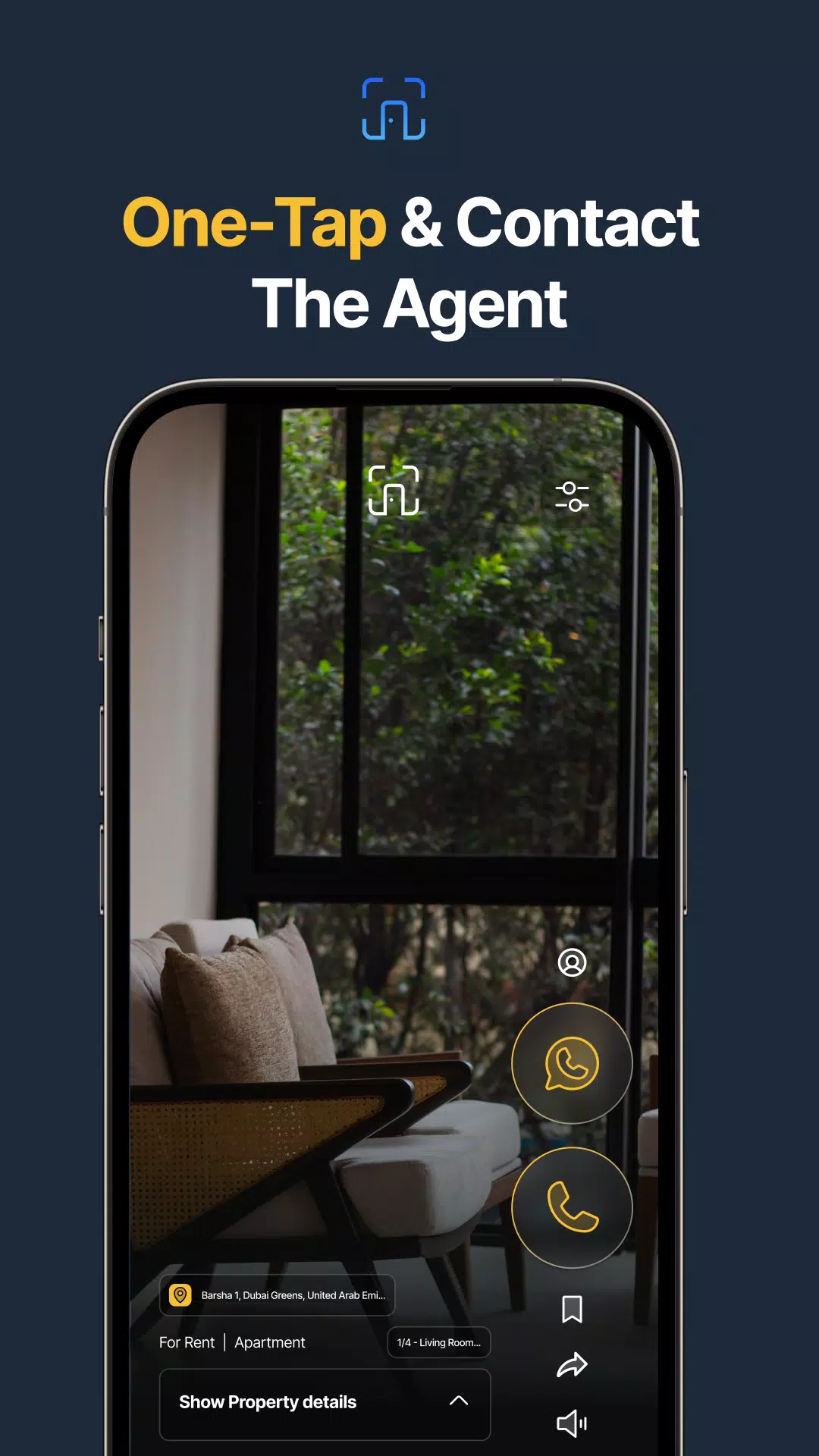 > One-tap contact with agents for easy communication.