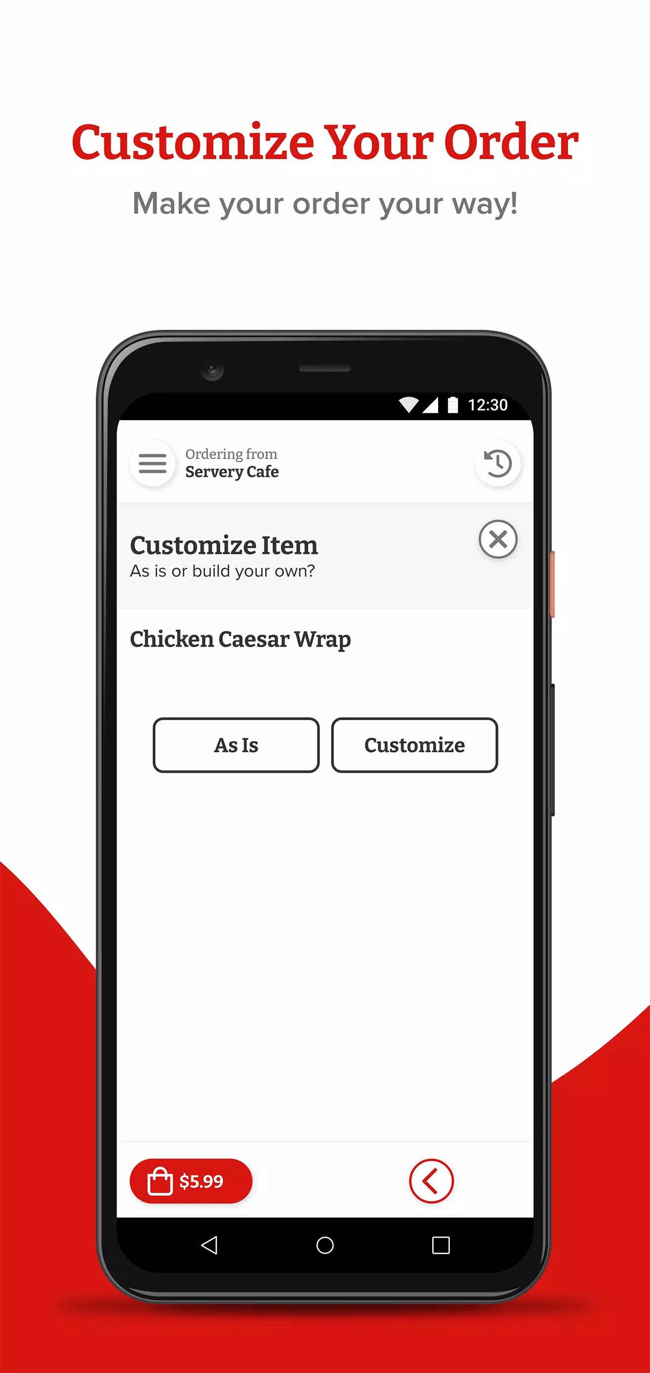 Experience a whole new level of convenience with an app that puts your food experience in your hands. Say goodbye to long waits and boring menus because Servery is here to revolutionize the way you eat. With personalized options that cater to your tastes and preferences, you can easily browse daily specials, reorder your favorites, and even customize your order with just a few taps. And the best part? You can choose when and where to pick up your meal, making it perfect for your busy schedule. With secure payment options and a user-friendly interface, Servery is the ultimate solution for delicious food on-the-go. Download now and elevate your dining experience!