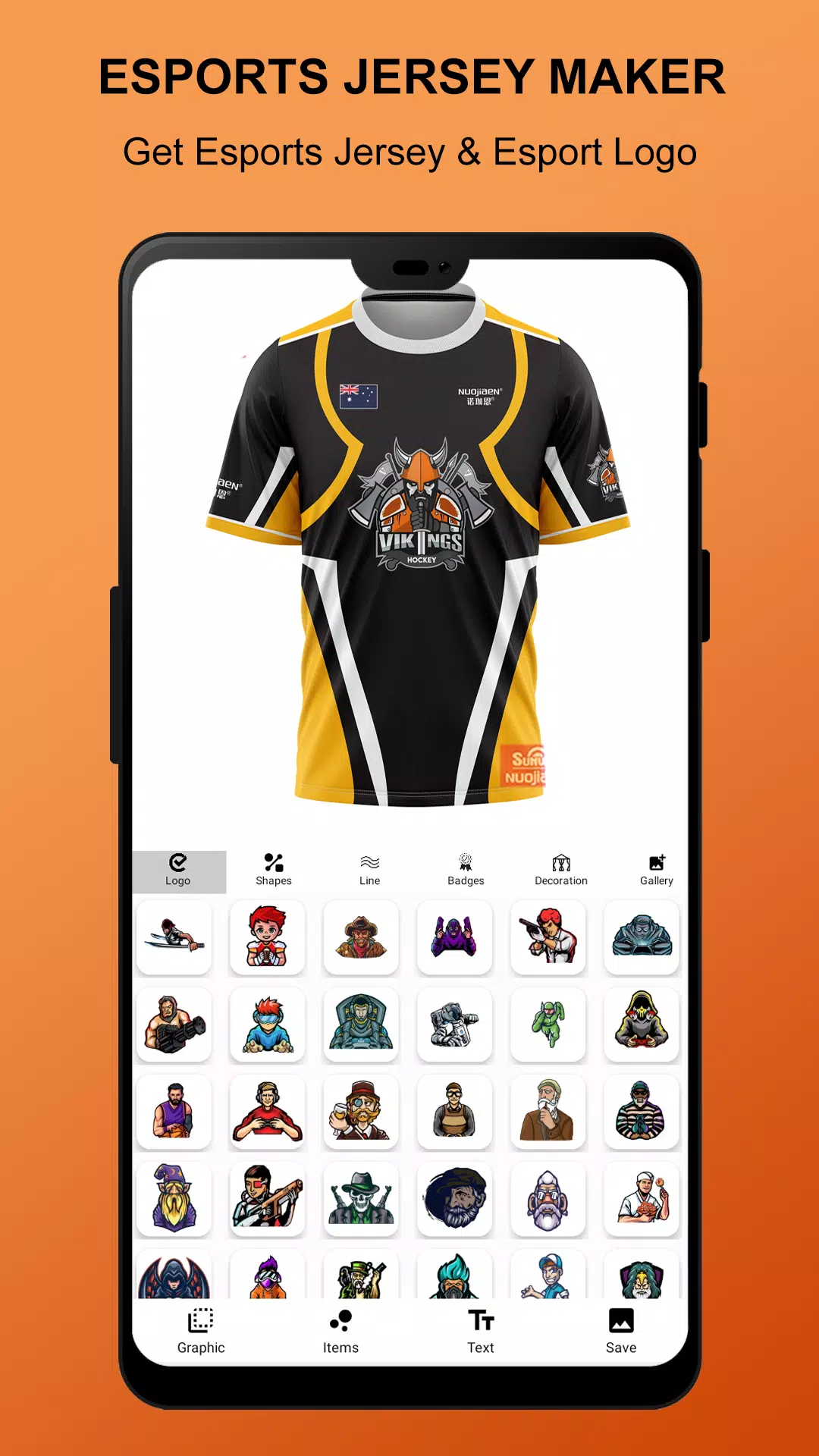 Unleash your creativity and show your support for your favorite esports team with the Esports Jersey Maker app. Design custom logos and mascots for your game, then proudly display them on your very own T-shirt. Share your unique designs on social media and stand out from the competition with stylish gaming apparel. With a user-friendly interface and a vast collection of arts, colors, textures, and stickers, this app makes designing your perfect T-shirt a breeze. Join the league of fashion-forward gamers and esports fans worldwide with this T-shirt design maker app. Let your creativity shine and make a statement with your gaming attire today!