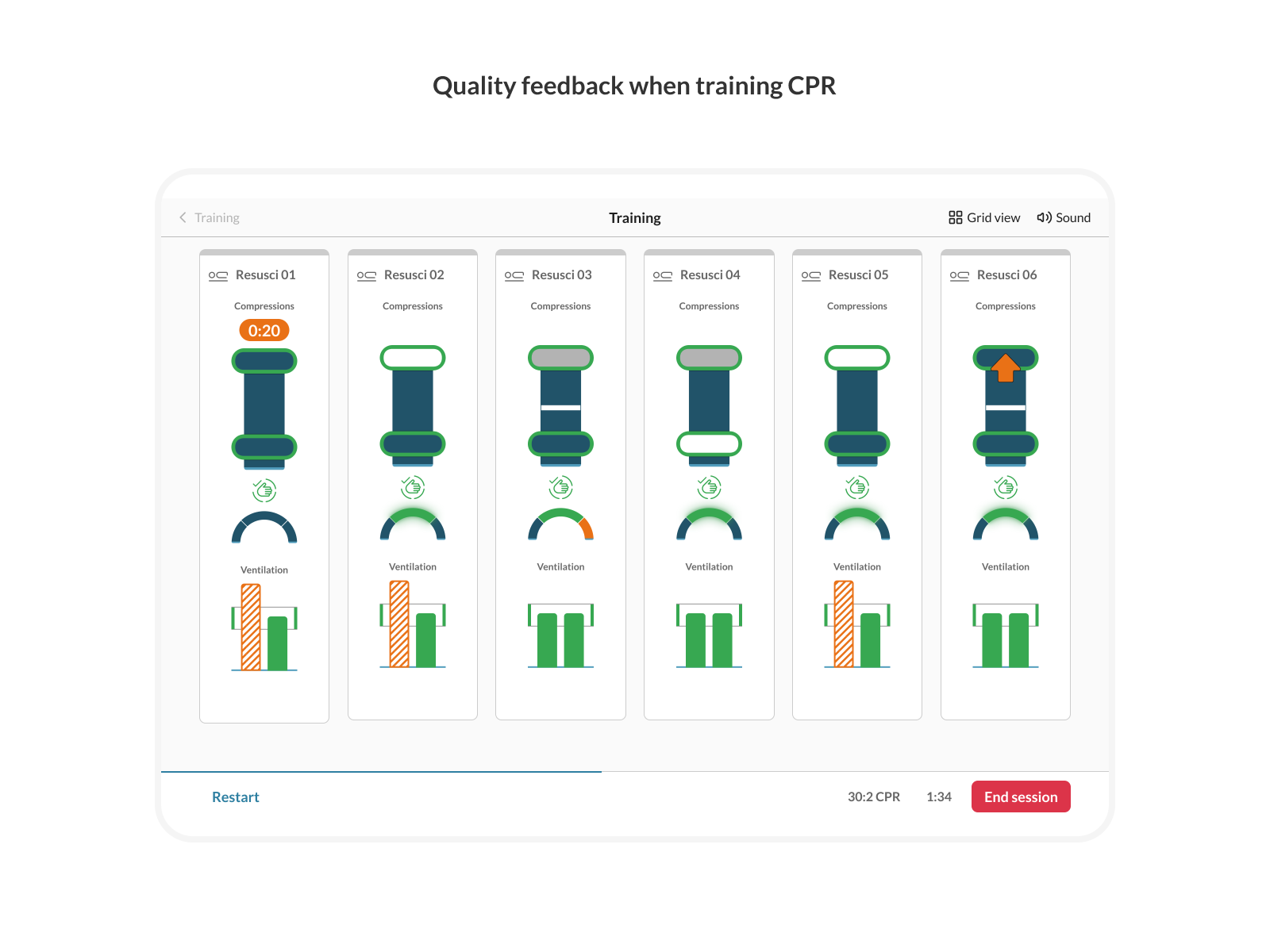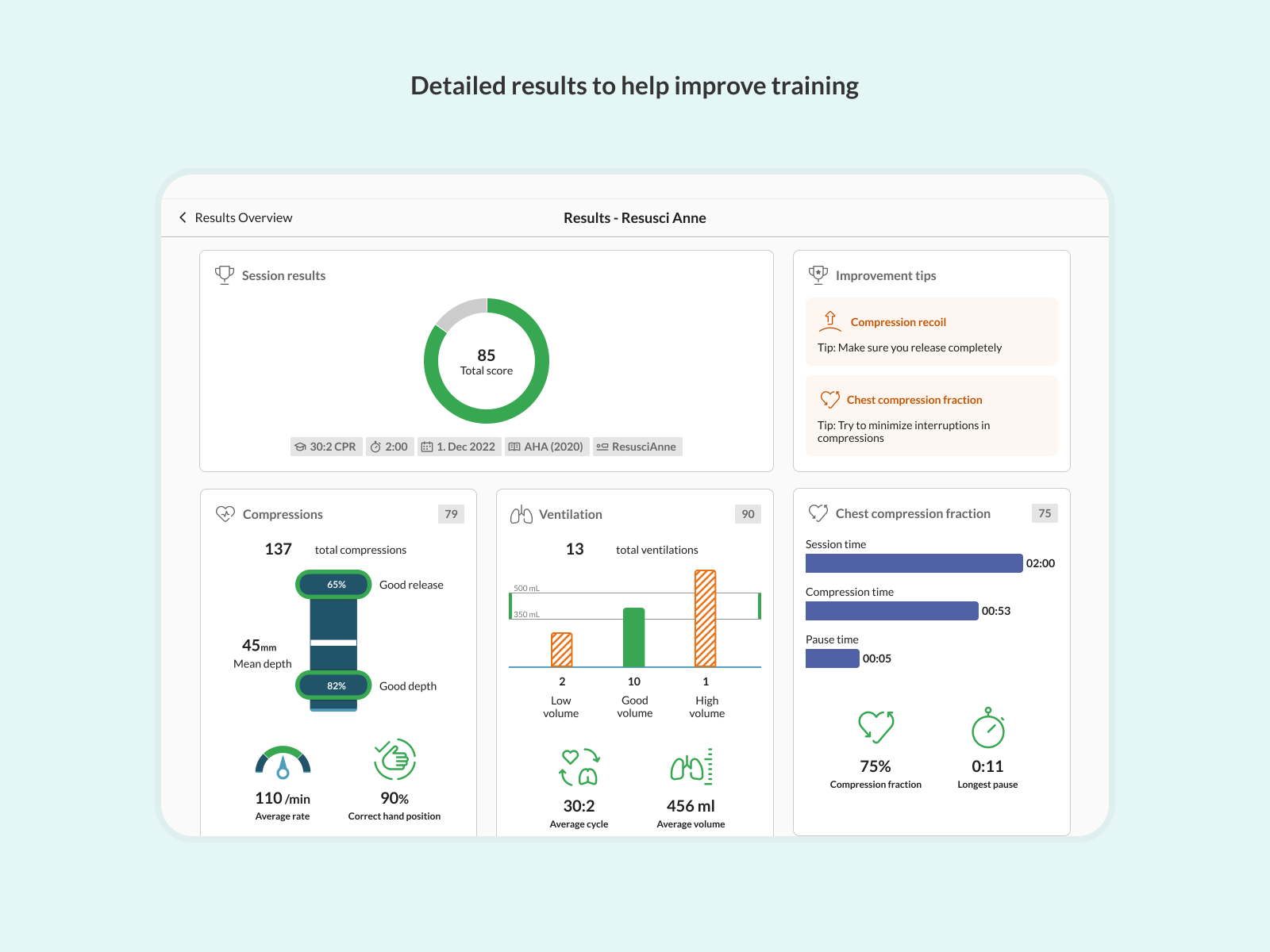 - Interactive Feedback: Receive real-time feedback on compression depth, rate, recoil, and ventilation volume for precise skill improvement.