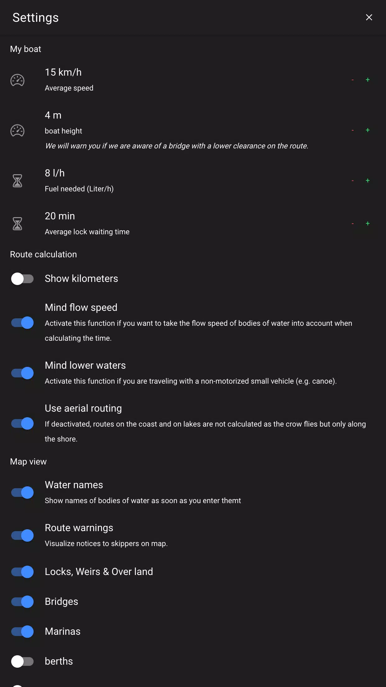> Easily plan waterway routes from dock to dock on over 280,000 kilometers of waterways.