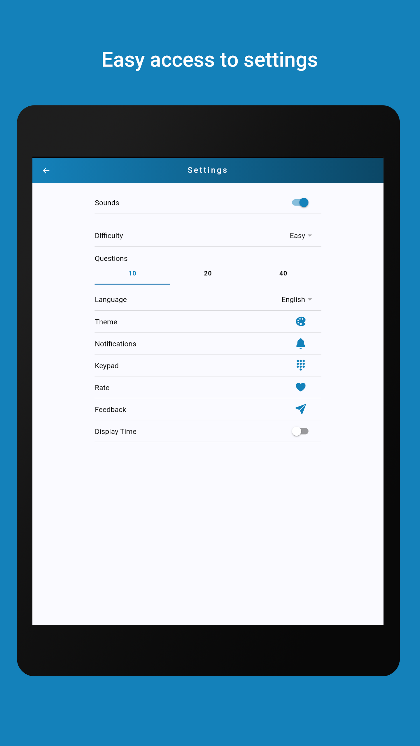 - Customizable Settings: Personalize your learning experience by adjusting difficulty levels, question sets, sound settings, and keypad layouts to suit your preferences.
