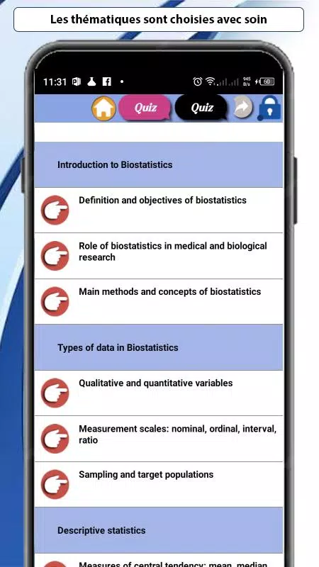 - Interactive Quizzes: Challenge yourself with our interactive quizzes that test your knowledge and help you track your progress. Earn points and unlock achievements as you improve your understanding of Biostatistics.