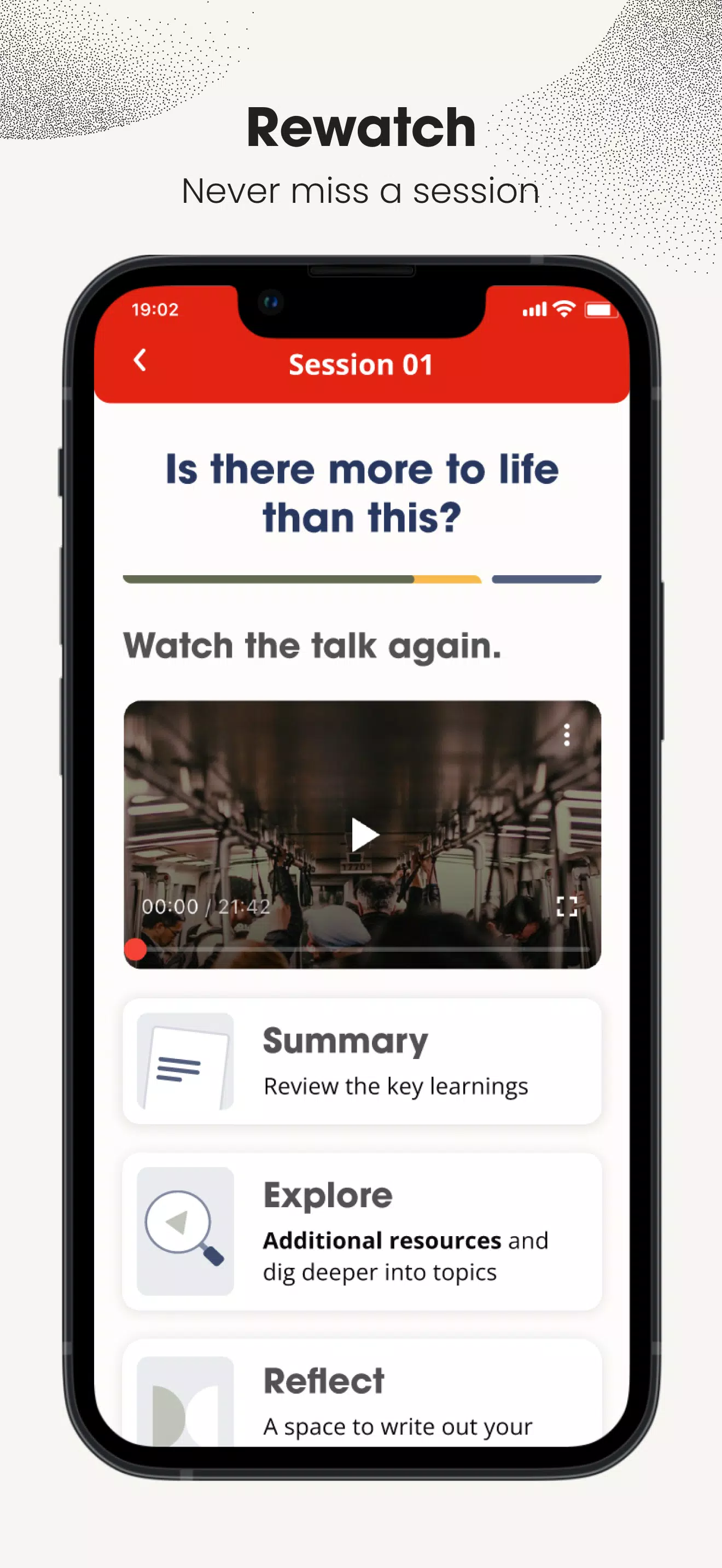 > Relive the Series: Whether you want to rewatch your favorite session videos or catch up on concise summaries, the Alpha App allows you to easily dive back into the captivating content that inspired you.