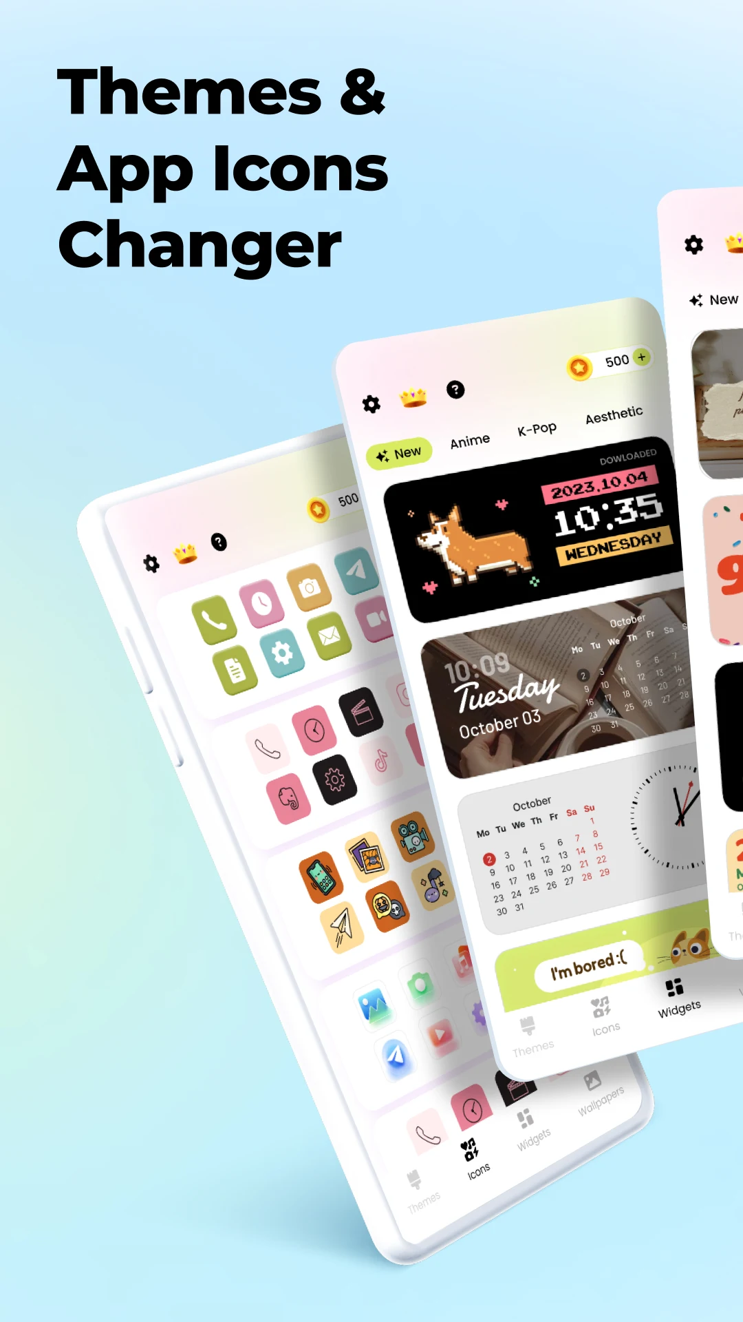 Theme Kit - App Icons Changer is the ultimate Android personalization tool, offering a vast selection of themes, icon packs, and wallpapers to make your phone screen pop. With over 5,000 options to choose from, including static and animated themes, users can easily create a unique look by mixing and matching different elements. Customization options like adding stickers, text, and filters allow for endless creativity. Plus, with weekly updates, there's always something new to try. Whether you're into aesthetic, trendy, or humorous designs, this free app is perfect for those who love to switch up their phone's appearance. Don't settle for a boring screen - download Theme Kit now and let your creativity shine!