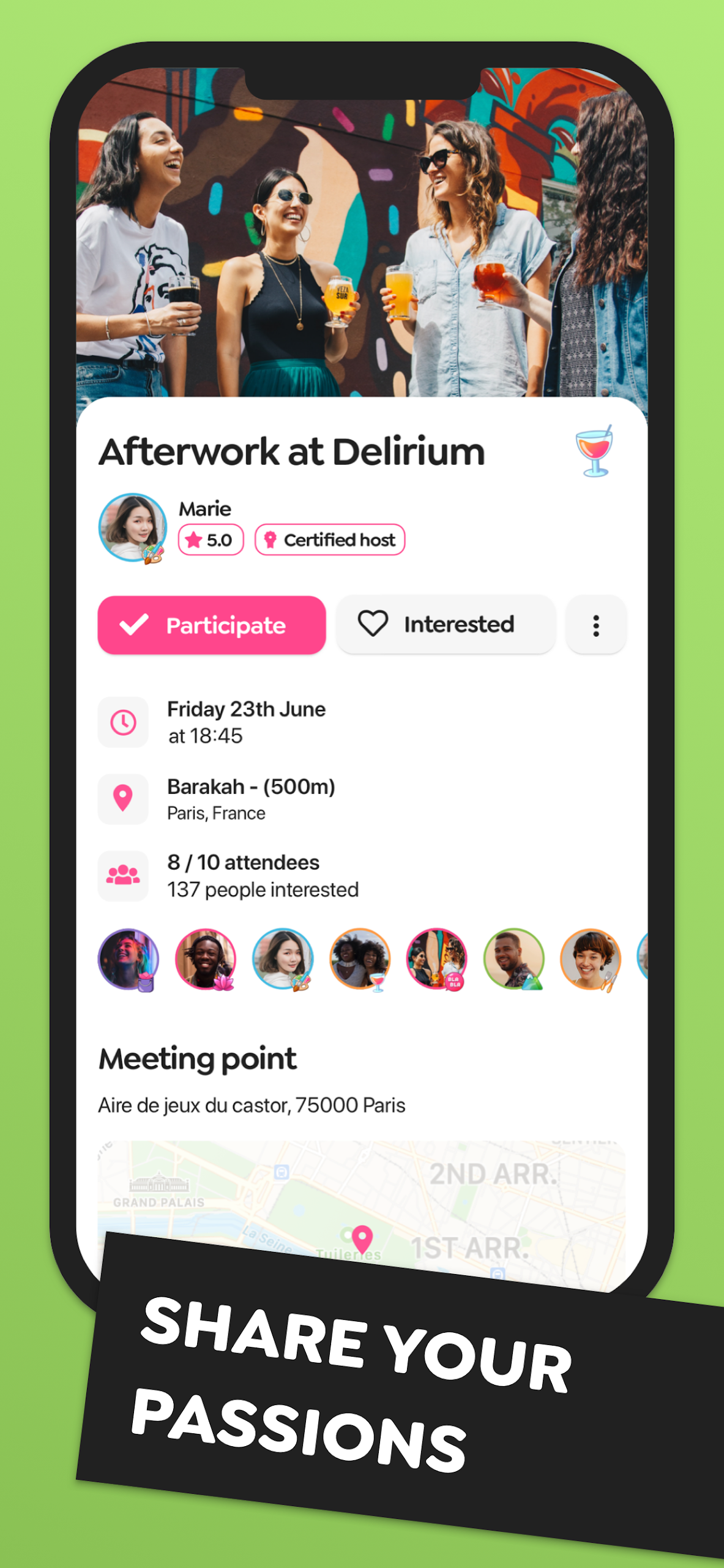 Eager to meet new people and expand your social circle? Look no further than Knockk, the ultimate app for forging real-life connections with like-minded individuals. With a diverse range of activities to choose from, including music, sports, dancing, hiking, and casual social gatherings, Knockk makes it easy to customize your profile and find nearby events tailored to your interests. Join a thriving community of over 500,000 users and embark on a journey of social discovery and friendship-building. Say goodbye to loneliness and hello to a more connected and fulfilling life with Knockk - your go-to app for enjoyable outings and making friends!