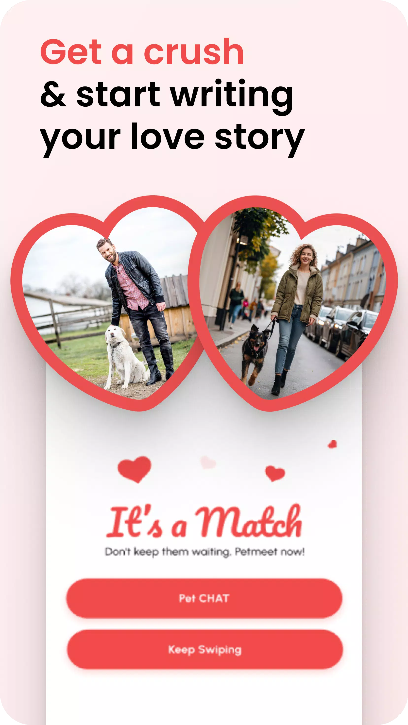 Discover your 'pawfect' match and let your love story begin with PetMeet: Dating & Friends App! Connect with pet lovers who understand and cherish the unique bond between pets and their owners. With features like purr-fect profiles, heartfelt connections, and pet-friendly socializing, Petmeet offers a welcoming community for pet owners to find love, friendship, and companionship. Join Petmeet today and embark on a journey of love, laughter, and paws!