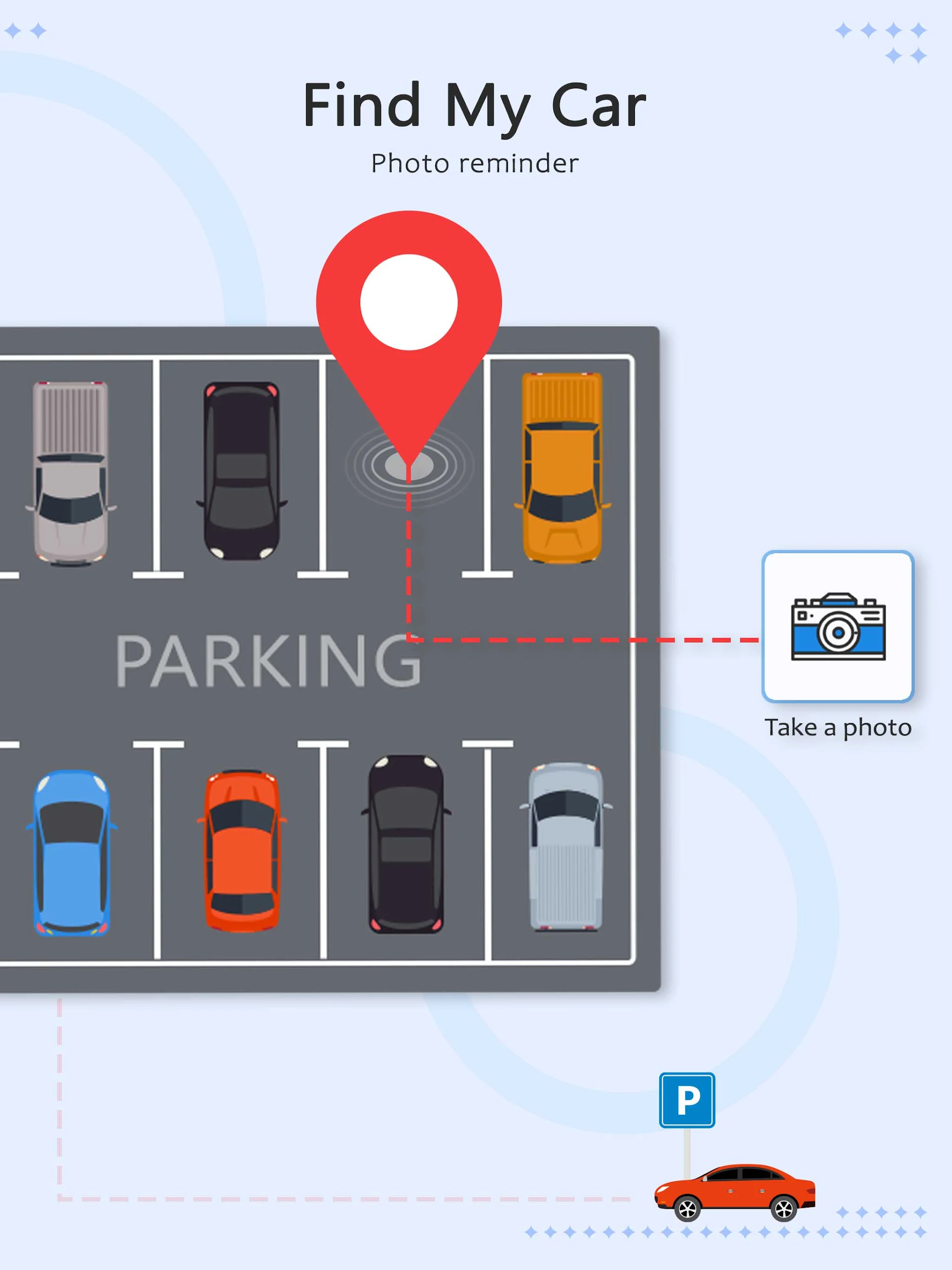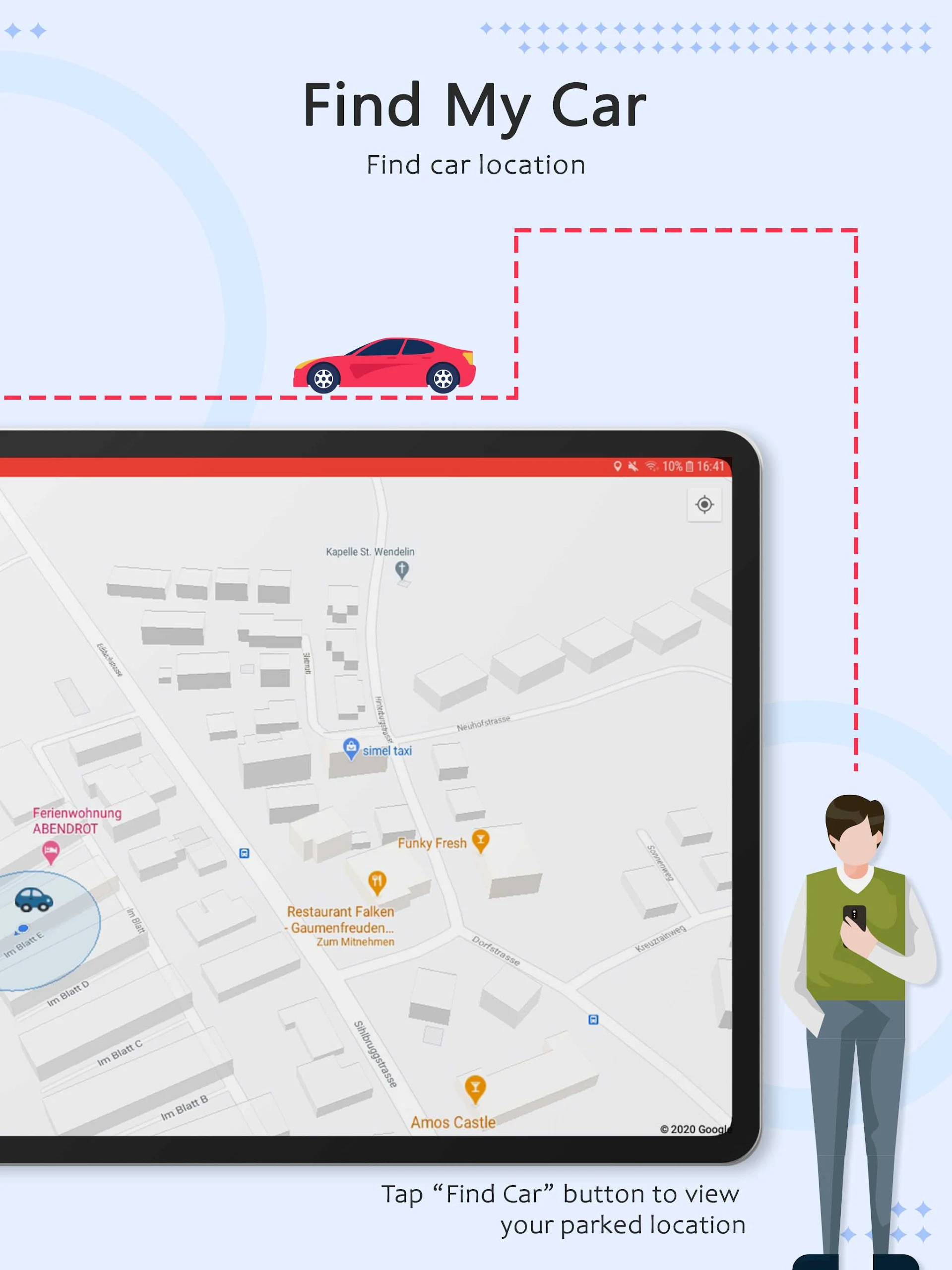 - Easily find your car later by tapping on “Find Car” for step-by-step navigation.