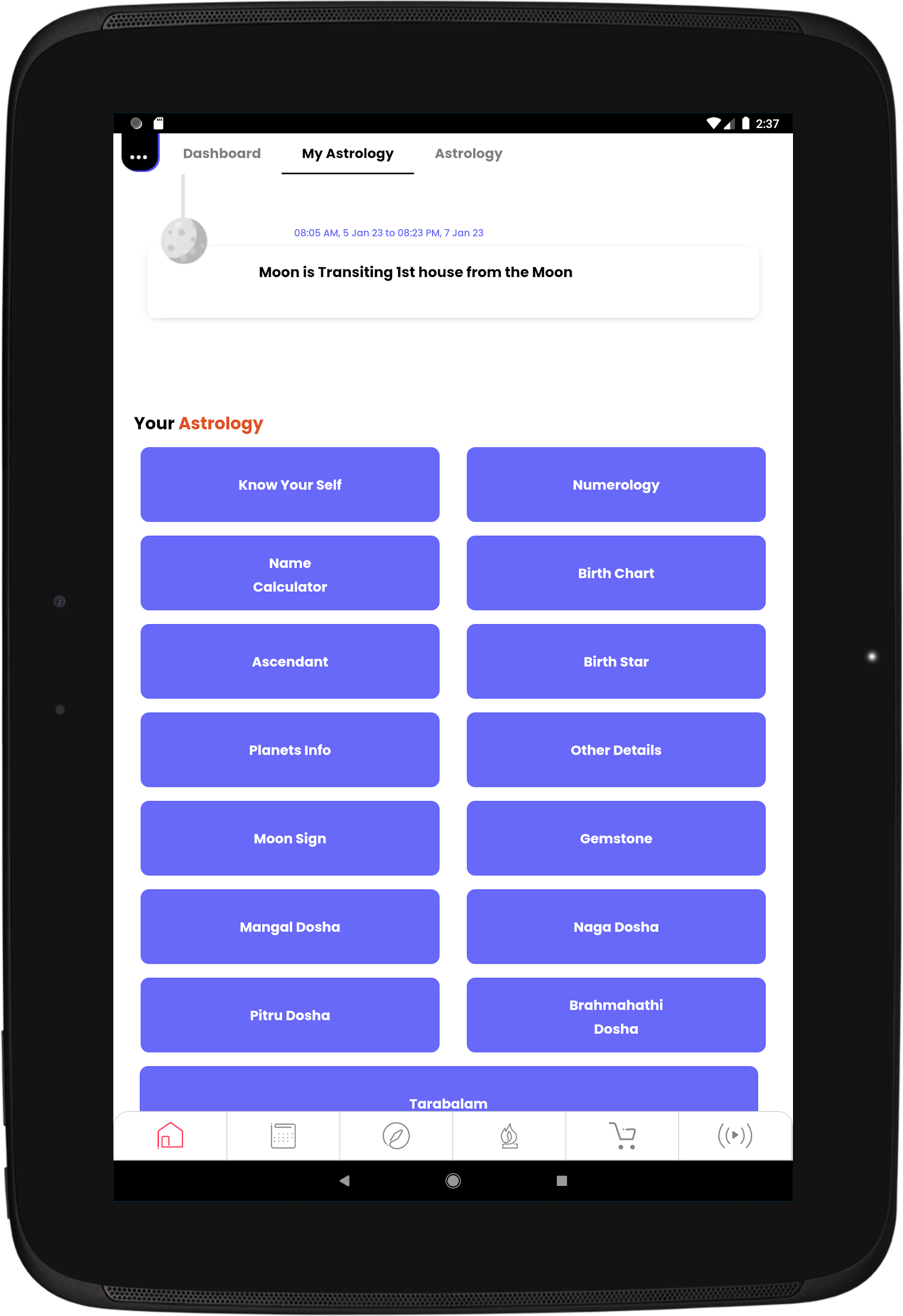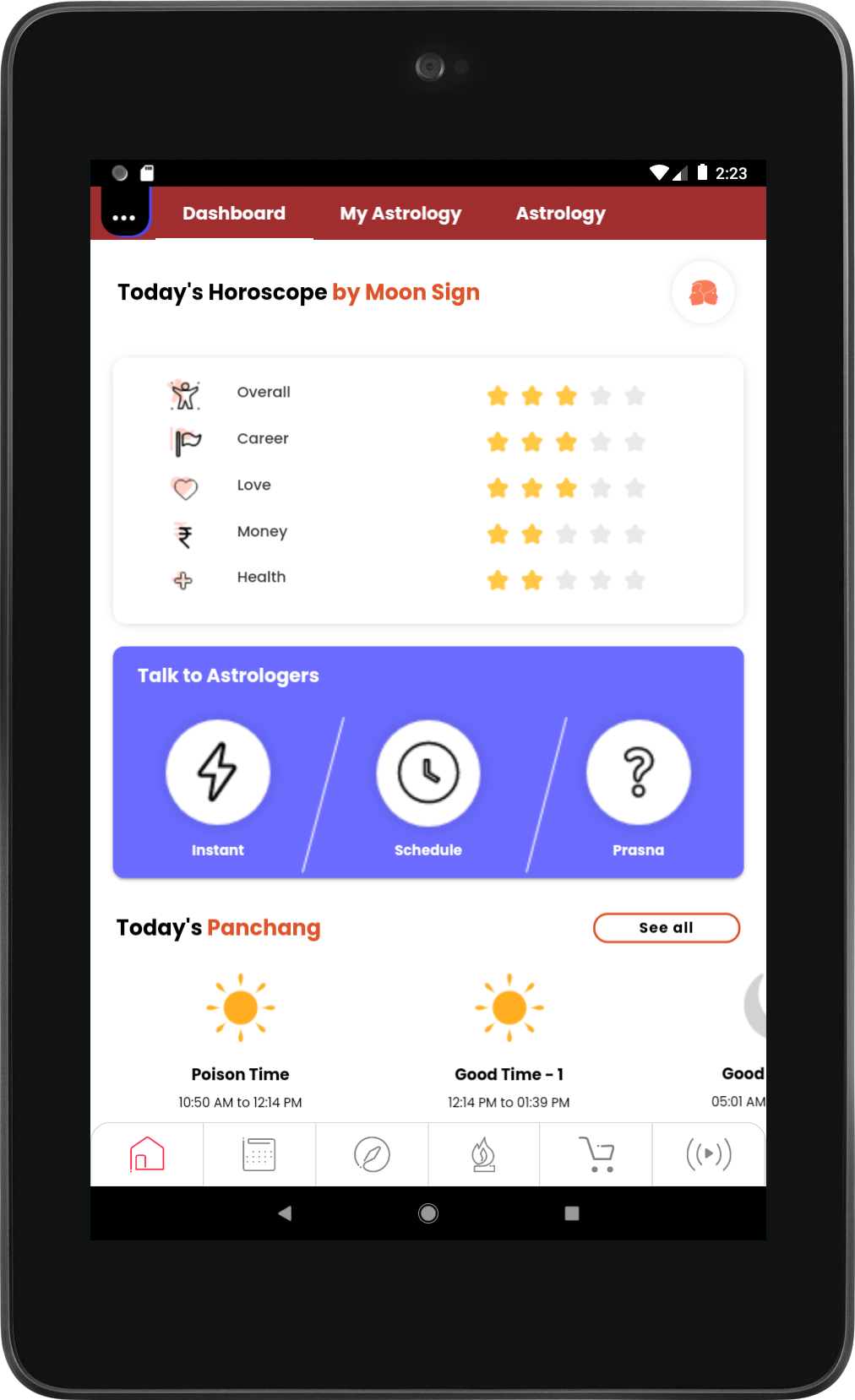 - Intuitive Dashboard: Easily navigate through a user-friendly dashboard that provides daily horoscopes, auspicious timings, astrology remedies, and more.
