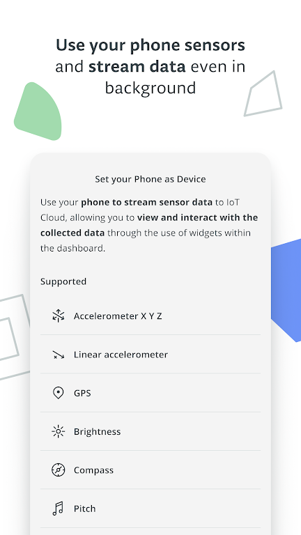 Versatile Widgets: Access a wide range of easy-to-use widgets such as switches, sliders, gauges, maps, and charts to monitor and control your IoT projects effectively.