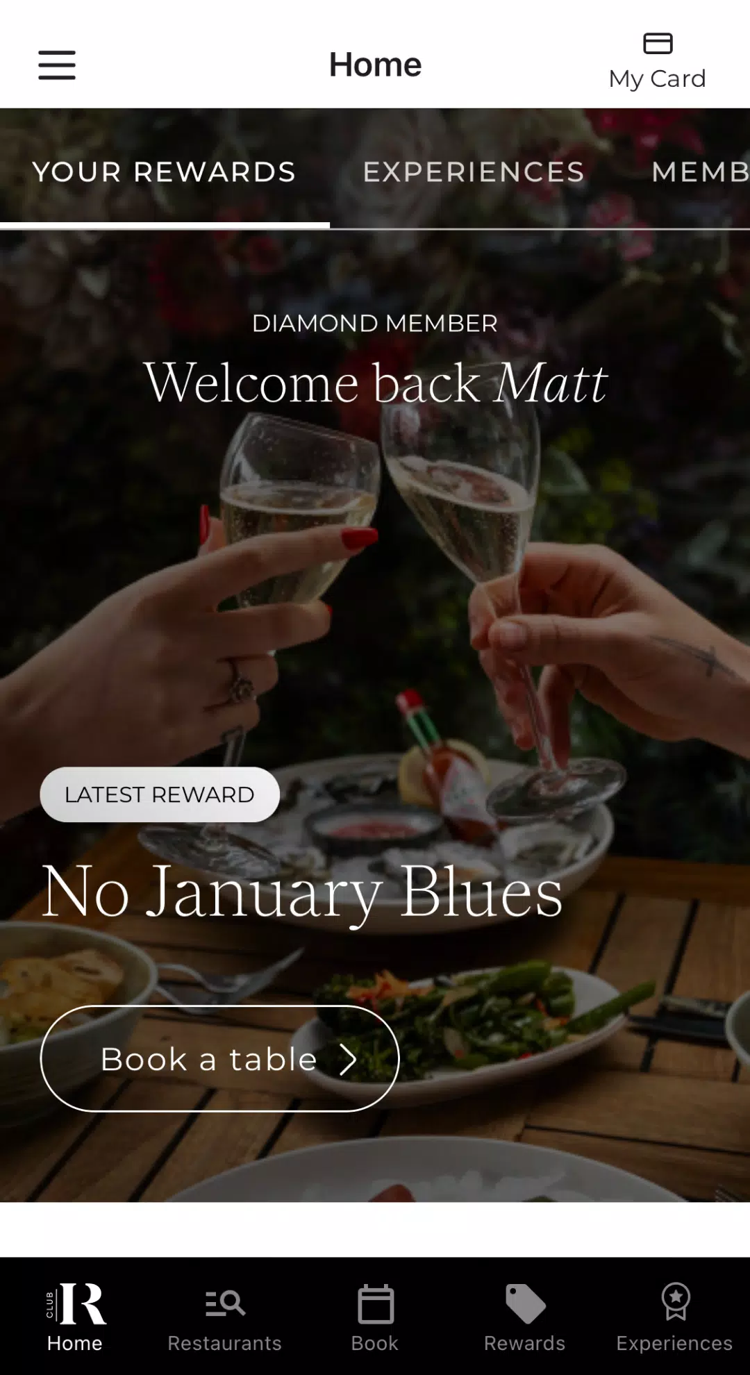 Monitor your loyalty journey within the app to see how close you are to unlocking even more rewards. The more you dine, the more you earn.