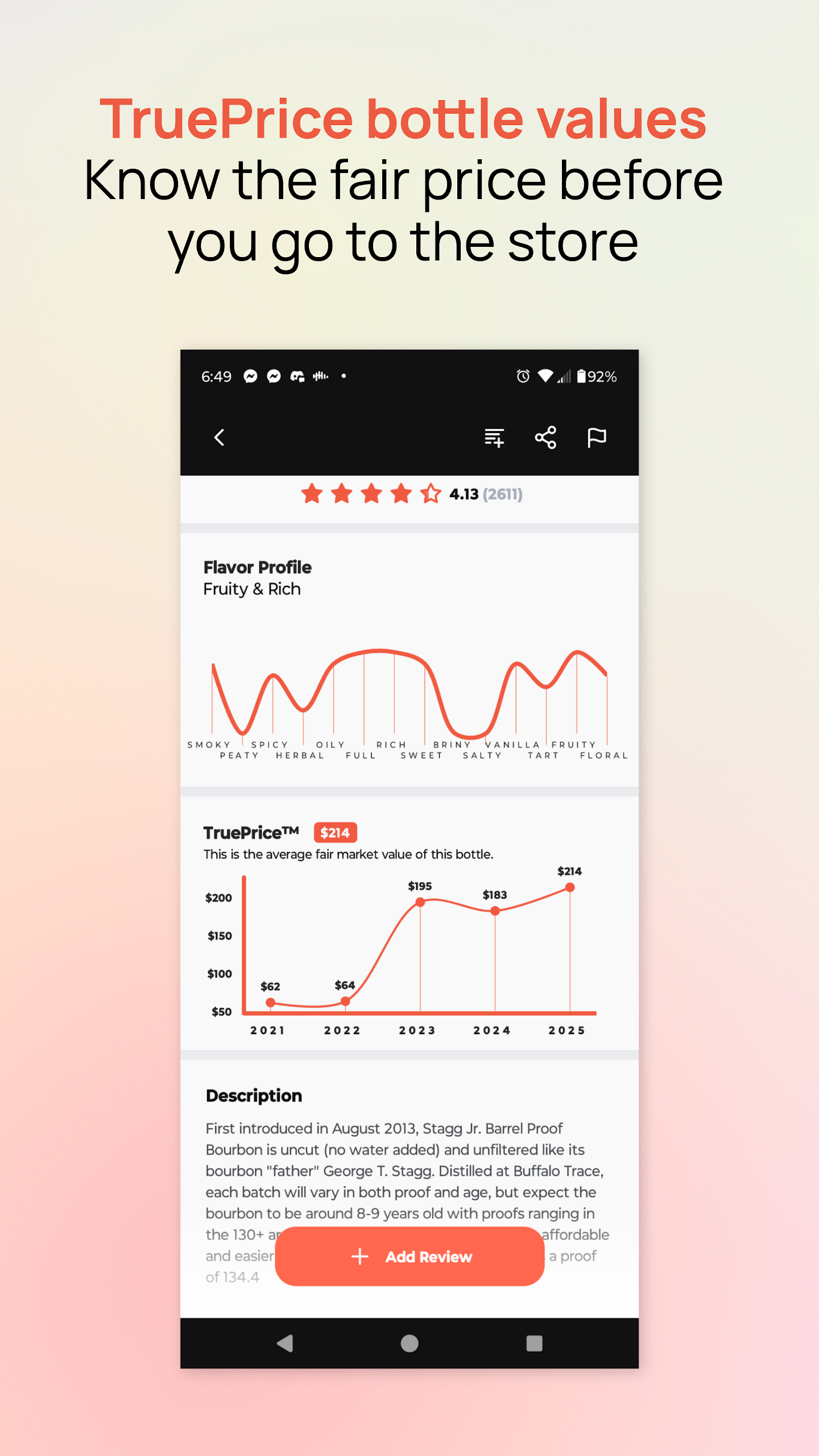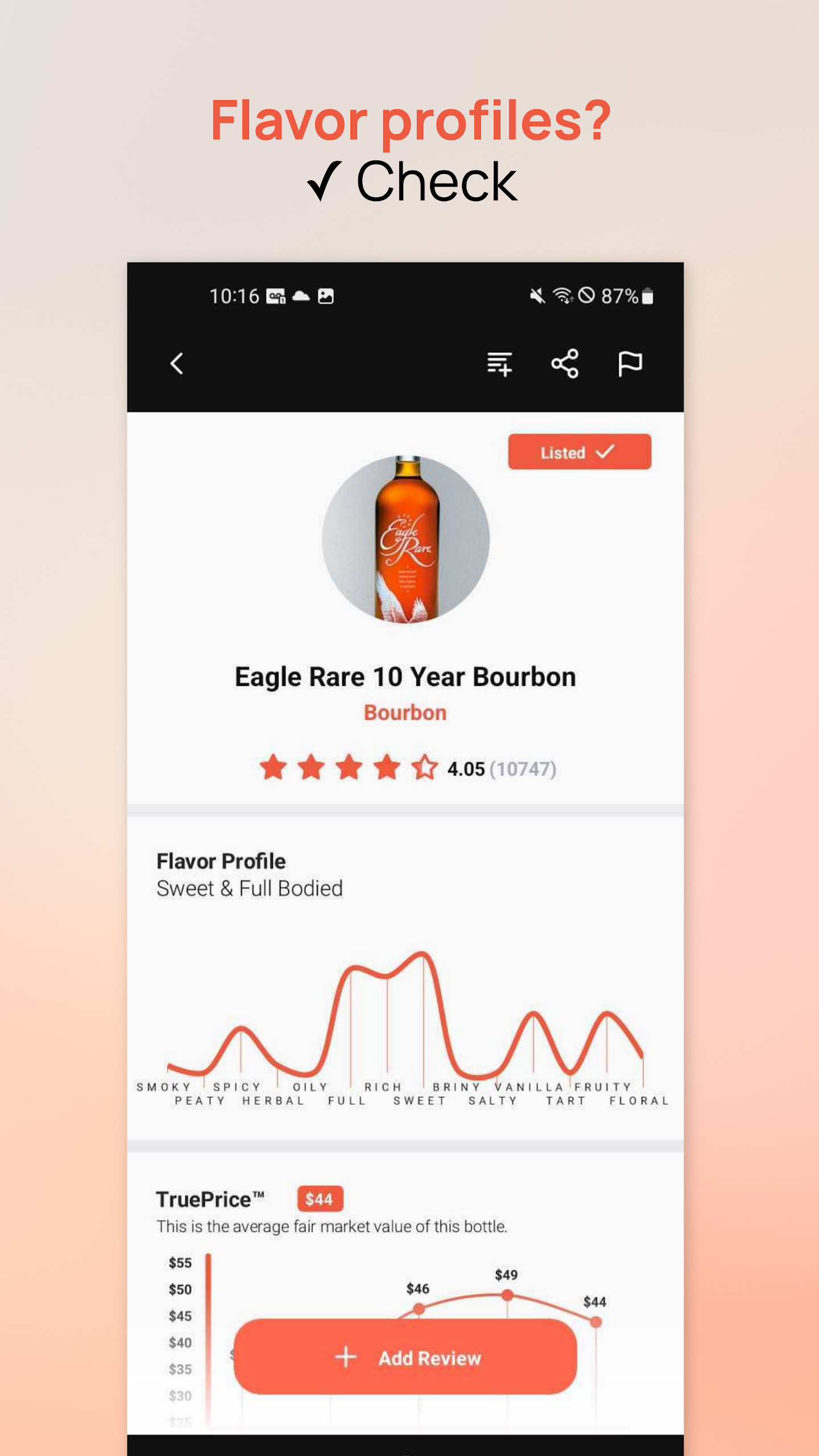 Enhance your spirit tasting experience with the ultimate tool for enthusiasts - Distiller app! With a vast database of over 60,000 spirits, detailed flavor graphs, and countless reviews, this app is a treasure trove for connoisseurs. Explore flavors, compare prices with the TruePrice feature, and document your tasting journey with personalized ratings and reviews. Upgrade to Distiller Pro for exclusive features like Pro Previews, ad-free scanning, and bottle quantity tracking. Join a community of spirit lovers, share recommendations, and discover new favorites. Whether you're a novice or a seasoned expert, Distiller app is your go-to companion for all things spirits. Experience it today and elevate your tasting experience to new heights!