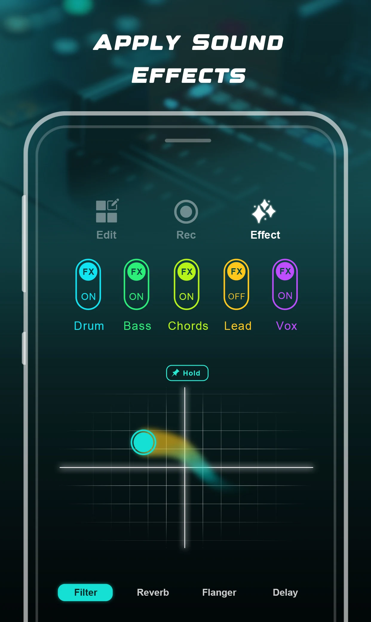 - Professional Effects: Elevate your loops with professional effects such as filter, flanger, reverb, and delay, giving your music a polished and dynamic sound.