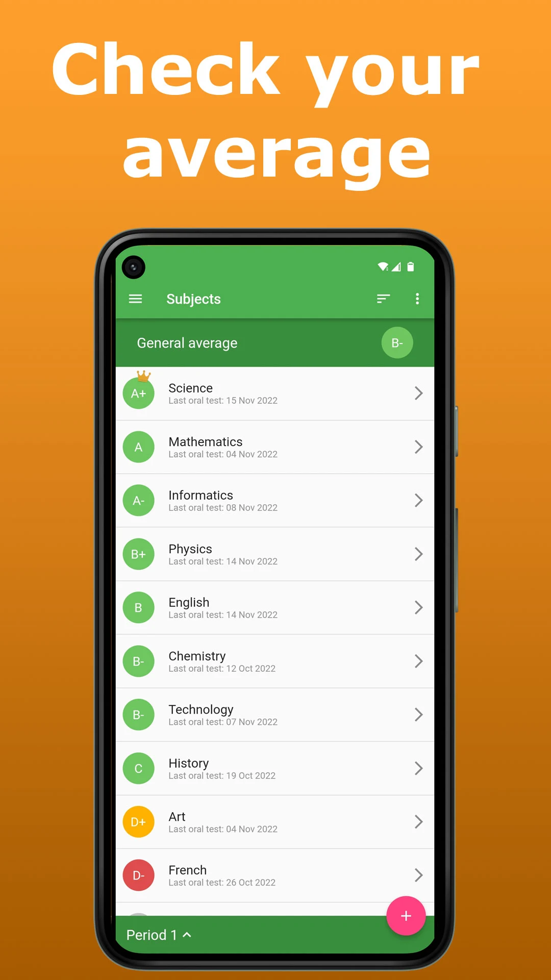 > Instant average calculation: Get your overall average instantly to see how you are doing across all subjects.
