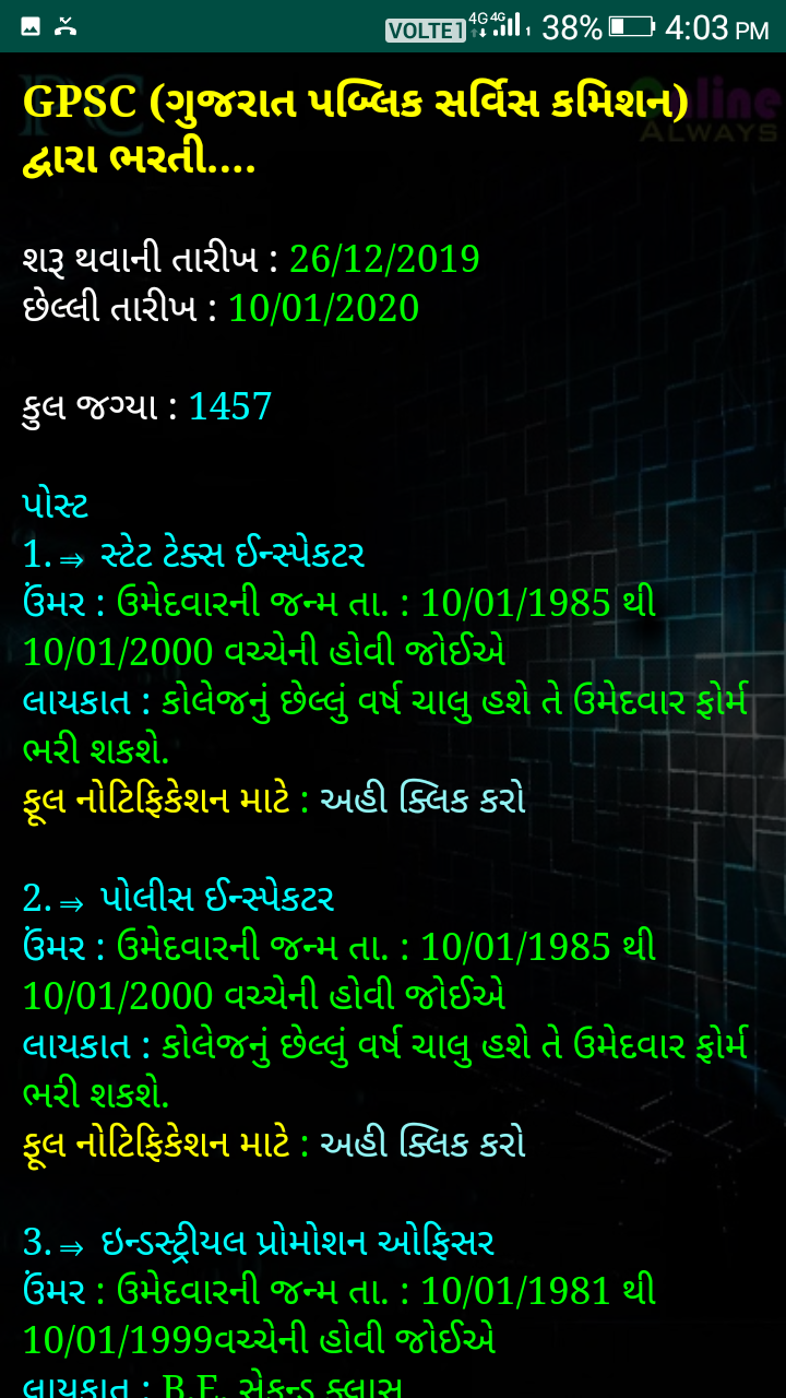 Gujarat Job Alert ( PC Job ) is a reliable and efficient tool for job seekers looking to navigate the competitive employment landscape. With its comprehensive job alerts, user-friendly interface, customization options, and free access, this app offers a practical solution that prioritizes utility and accessibility. Whether you're a seasoned professional or a recent graduate, PC Job can help you find the job opportunities that align with your career goals. Download the app today and take the next step towards your dream job.