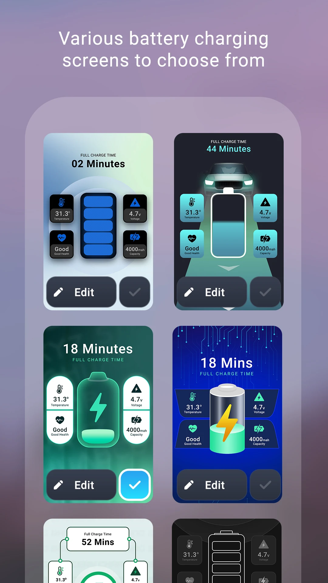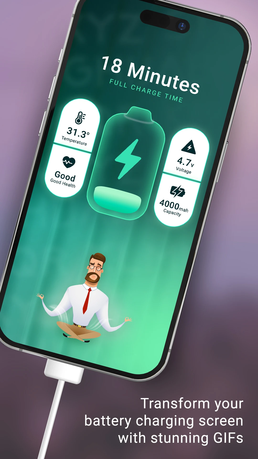 - Customizable Charging Animations: Battery Charge Animated Screen offers over 20 dynamic charging visuals that can be customized to suit your preferences. From glowing icons to playful characters, you can tweak the size, opacity, rotation, and screen position of the animations. This feature adds a fun and personalized touch to your charging experience.