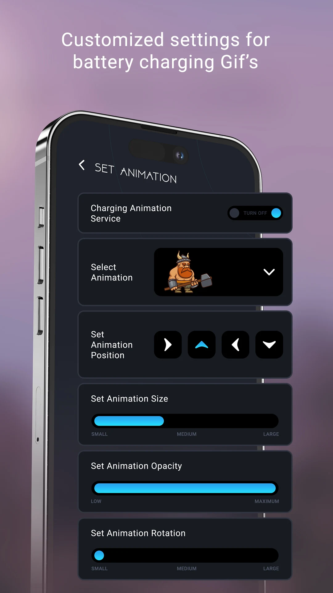 - Experiment with Different Animations: Explore the diverse range of charging animations available within the app and find one that resonates with your style. Customize the size, opacity, rotation, and screen position to create a charging experience that is uniquely yours.