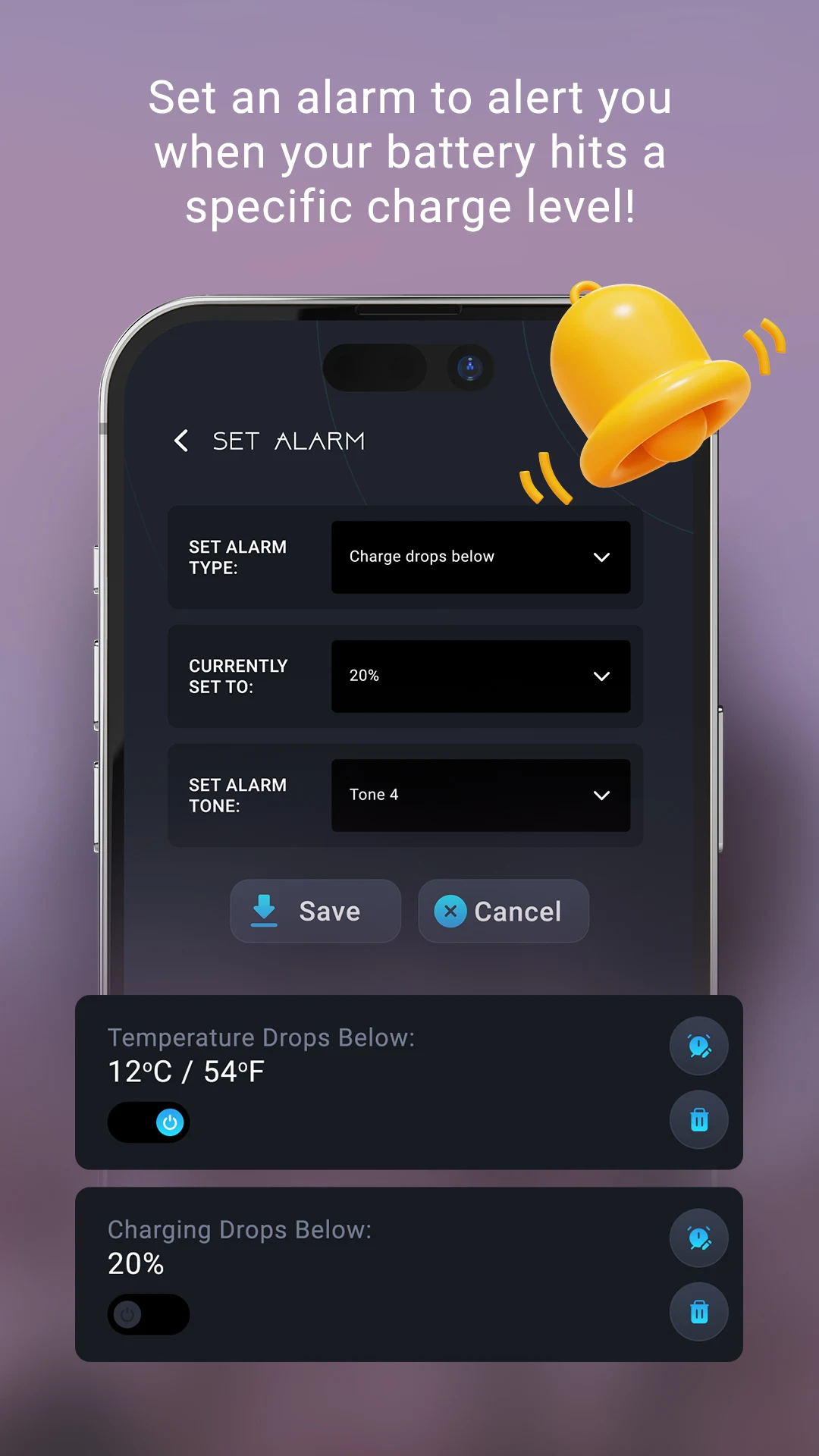 - Battery Alarms: Set up alarms for when your battery reaches full charge or specific percentages, ensuring that you never run out of power. You can also establish alarms for low battery levels, keeping your phone ready for use at all times. The adjustable tones allow you to customize the alerts to your liking.