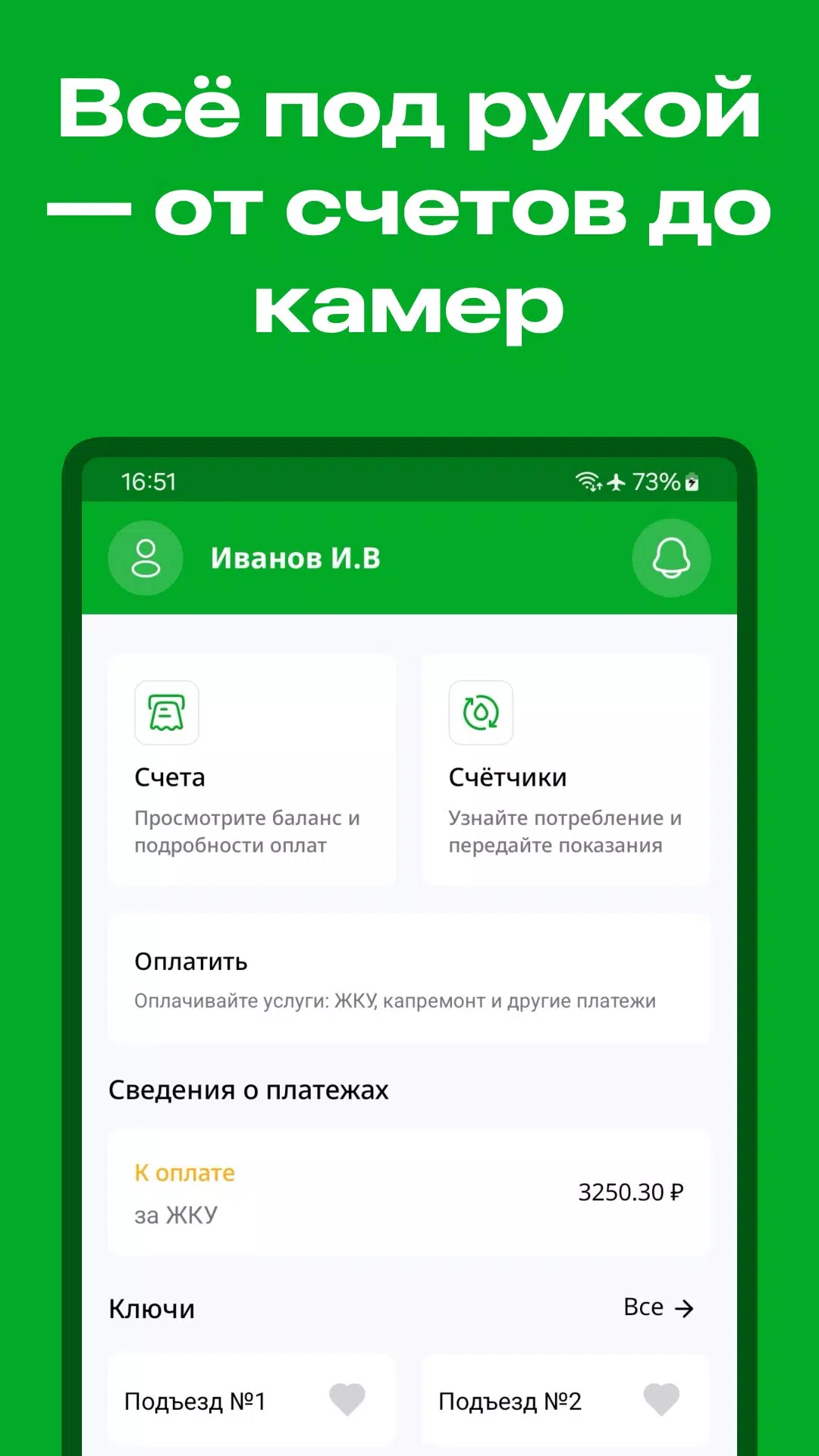 Домовладелец+ allows users to easily view all information on charges and payments for housing and communal services. This feature ensures that residents can stay on top of their expenses and budget effectively.