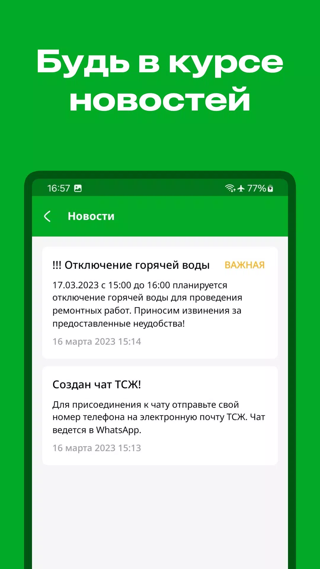 With Домовладелец+, users can always be aware of the latest news and updates related to their homes. This feature keeps residents informed about any important announcements or changes in their living environment.