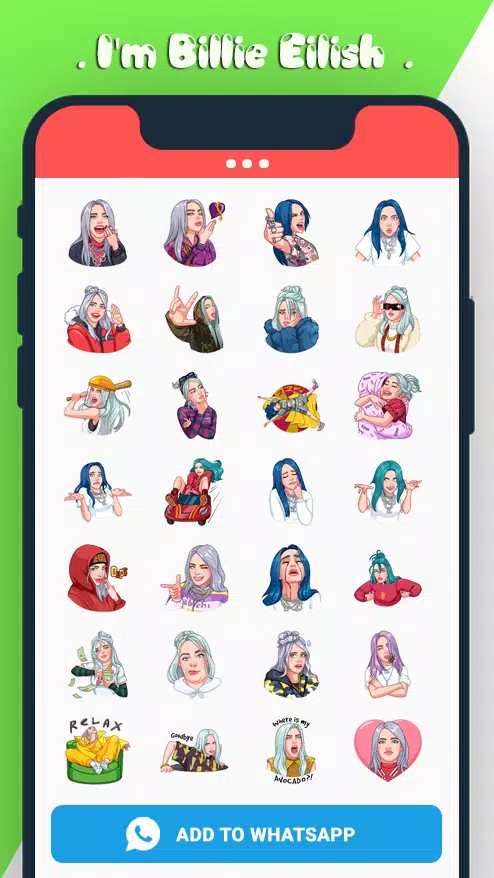 * Celebrity stickers featuring icons like Billie Eilish and Marilyn Monroe