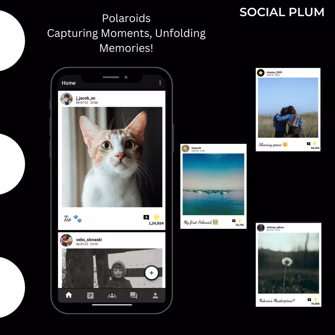 Social Plum: Share & Inspire is the ultimate app for capturing, sharing, and inspiring through Polaroid pics, blogs, community, and questionnaires. With its user-friendly interface and plethora of features, Social Plum allows users to create stunning Polaroid-style photos, craft visually enhanced blog posts, connect with a vibrant community, and engage in thought-provoking questionnaires. Privacy and security are also a top priority, ensuring that your memories are safeguarded. Whether you're a seasoned storyteller or someone who appreciates life's fleeting moments, Social Plum is the perfect platform to share your unique experiences. Join us today and embark on a journey of creativity, inspiration, and lasting connections.