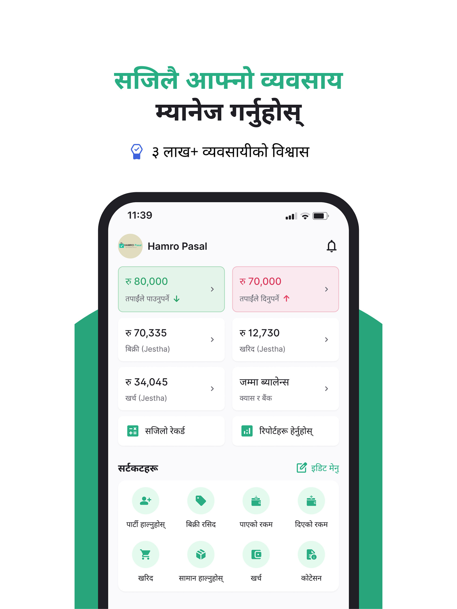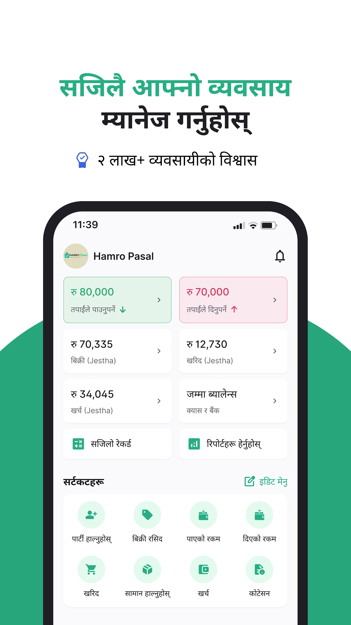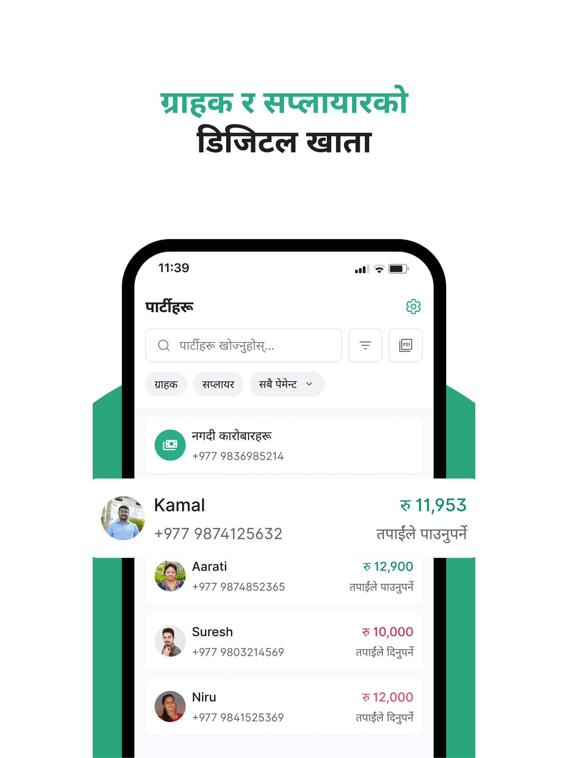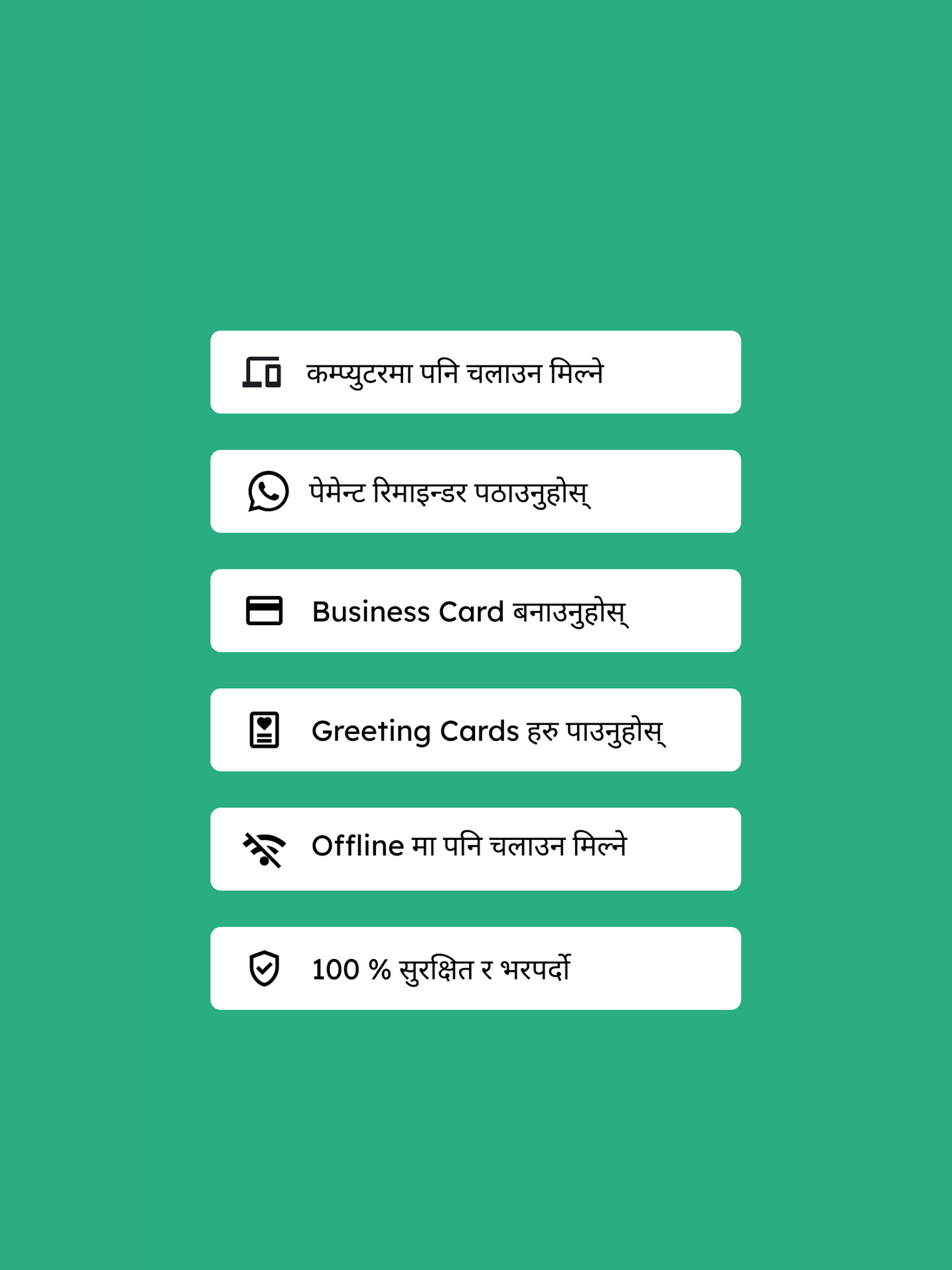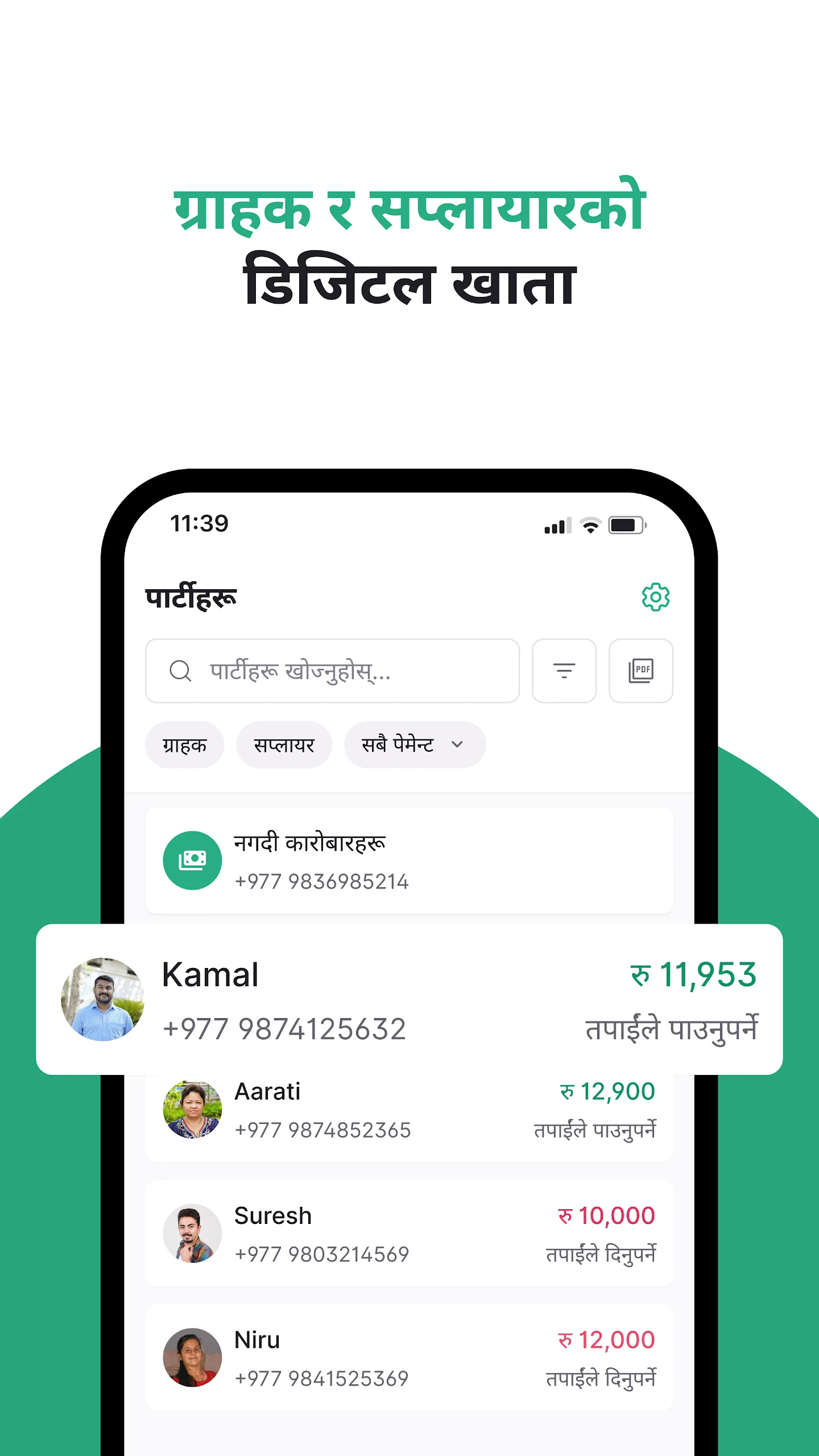 Karobar - Nepali Digital Khata is the ultimate business management solution for entrepreneurs in Nepal, offering a wide range of tools to streamline daily operations. From bookkeeping and inventory tracking to invoicing and customer relationship management, Karobar caters to all expanding businesses, including retailers, wholesalers, freelancers, and manufacturers. With simplified financial management, streamlined invoicing, effective inventory tracking, and enhanced business oversight, Karobar is designed for usability, dependability, and security. And the best part? You don't need any prior accounting knowledge to use it! Download the Karobar App today and take your business to new heights digitally.