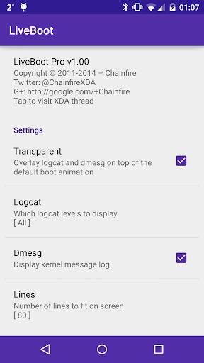 Real-time Display: [root] LiveBoot allows users to view logcat and dmesg outputs in real-time on their screens, providing a unique insight into their device's processes.