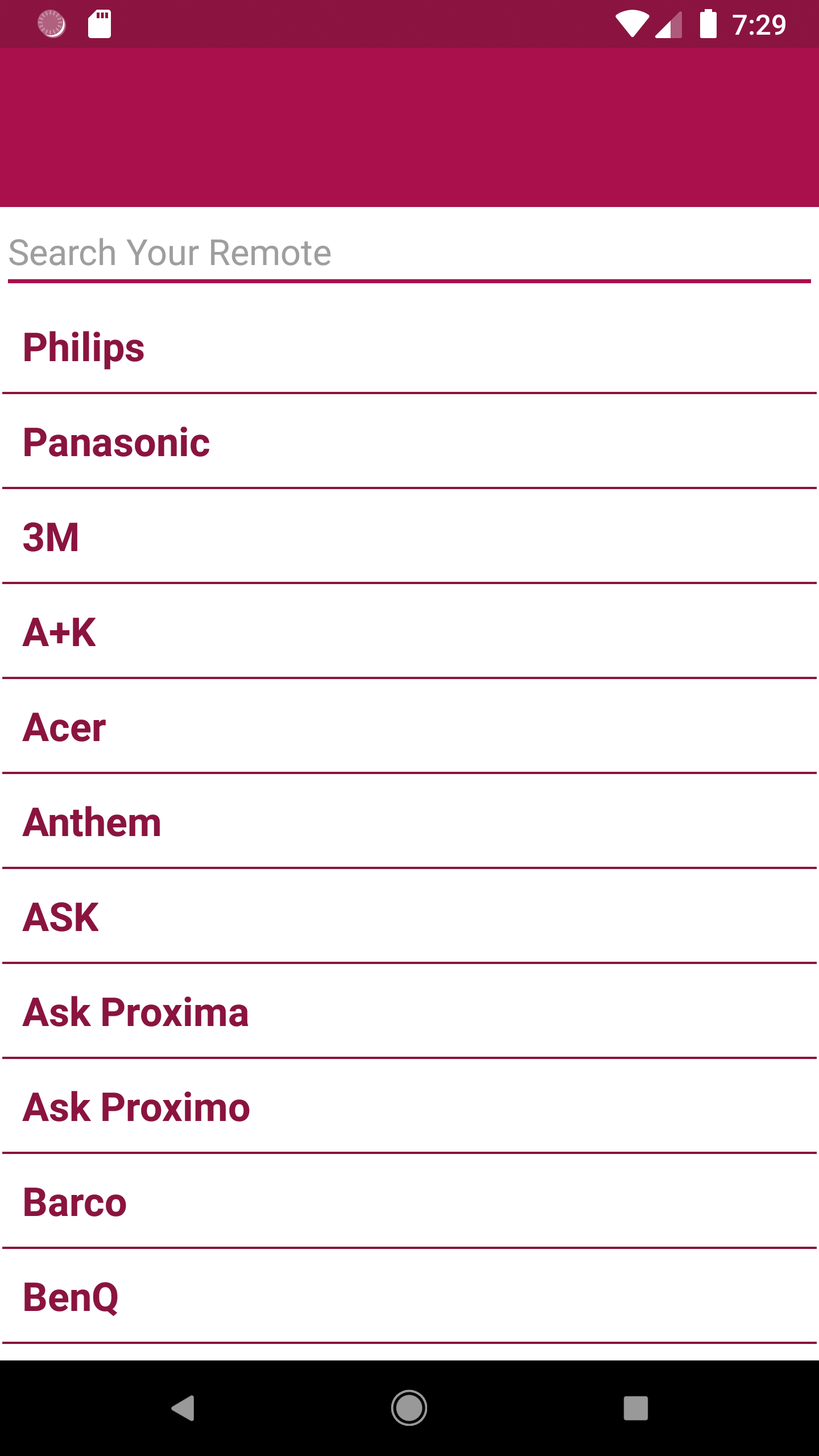 - Select your projector brand from the extensive list provided in the app to access specific control options.