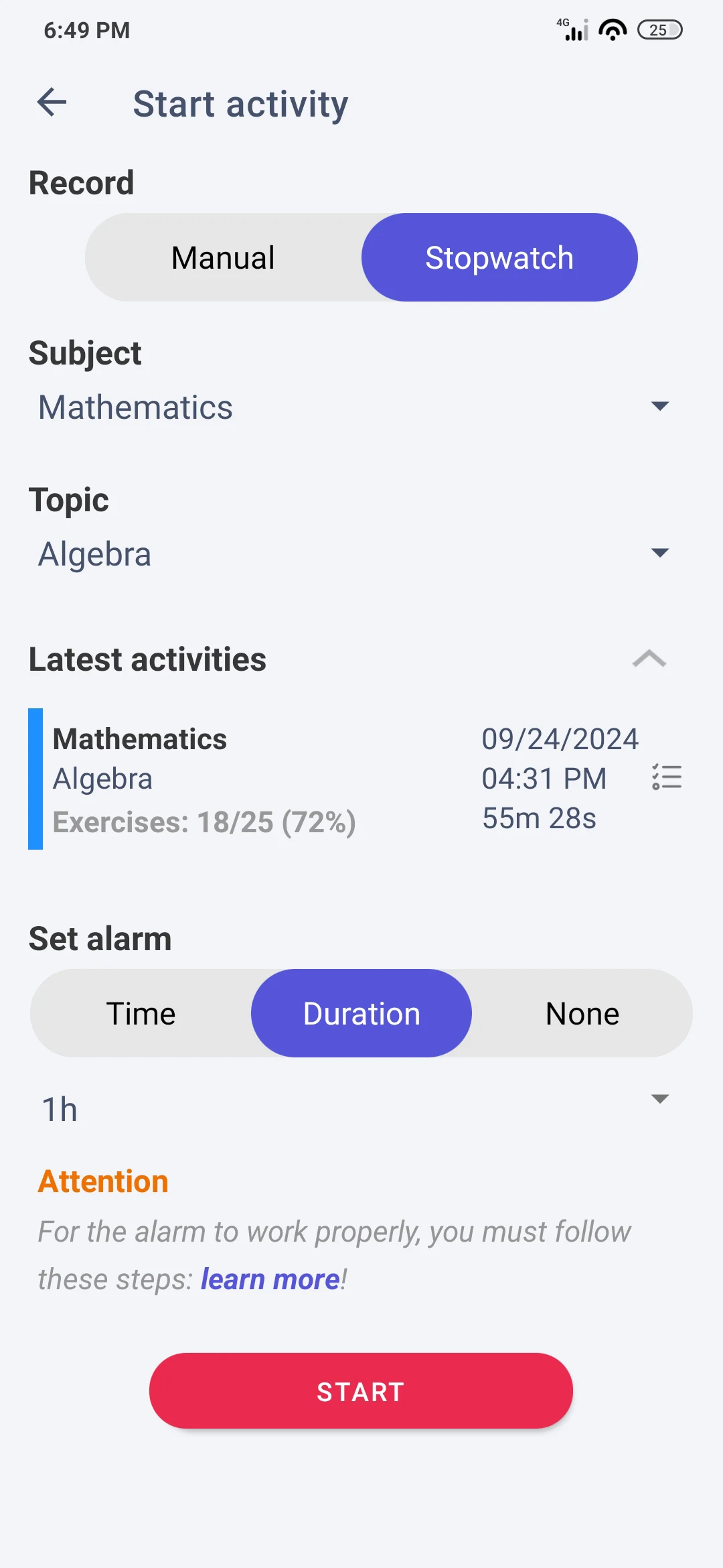 Easy Organization: Aprovado helps you organize your study sessions by allowing you to record subjects and study durations effortlessly.