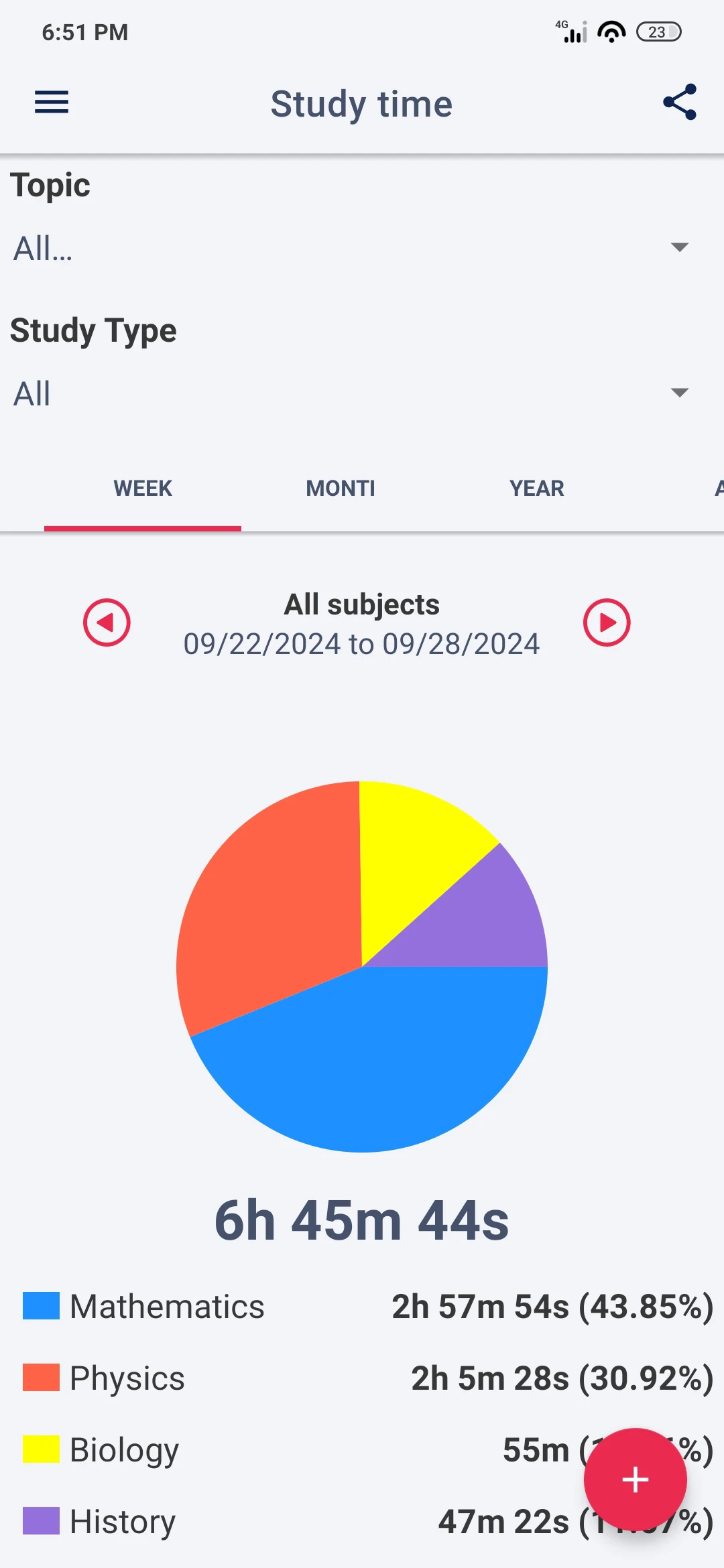 Progress Tracking: The app provides charts and graphs to help you visualize and analyze your study progress on a daily, weekly, or monthly basis.
