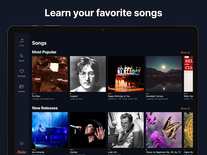 Introducing "flowkey," the ultimate piano learning app that is revolutionizing the way people learn to play piano or keyboard. With a wide range of songs and lessons suited for every level, flowkey makes it easy and fun to start playing beautiful music within hours, even if you're a complete beginner. You'll be guided by professional pianists every step of the way, learning everything from reading sheet music to mastering scales and chords. With over 155K 5-star reviews globally, flowkey is loved by piano learners and teachers alike. Try it for free and upgrade to flowkey Premium for unlimited access to songs and lessons - the perfect tool to take your piano skills to the next level.
