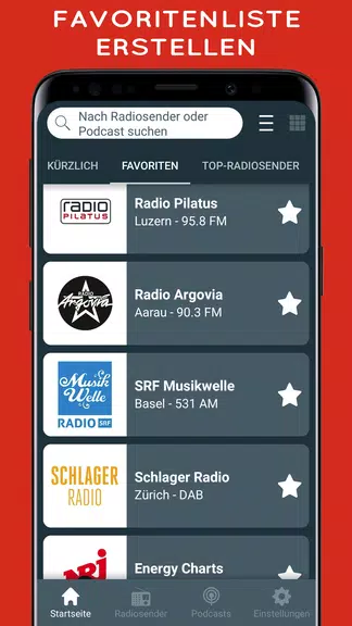 Indulge in a world of endless radio possibilities with this innovative and free app that brings you over 500 radio stations right at your fingertips. With an intuitive interface, Radio Swiss allows you to dive into a wide array of genres, from sports to music to news, and even comedy. Stay connected to your favorite shows and podcasts with the track ID feature, and effortlessly add stations to your personalized list with just one tap. Whether you're waking up with your chosen station as your alarm or drifting off to sleep with the sleep timer, Radio Swiss is the ultimate companion for all your radio needs. Experience a seamless listening experience both inside and outside Switzerland, and discover new stations effortlessly with the smart search feature. Dive into a world of music and entertainment with Radio Swiss today.
