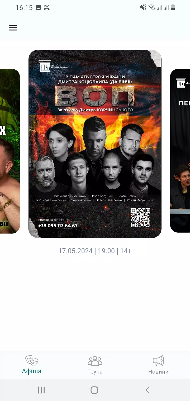 Immerse yourself in the world of theater with the Cult Theatre app. This convenient platform grants you access to the theater's diverse repertoire, allowing you to effortlessly book tickets, check showtimes, and stay updated on all the latest news. With detailed information about genres, languages, and durations of performances, you can easily find the perfect show to suit your preferences. The user-friendly interface ensures a seamless booking process and interactive communication with the theater, making it easier than ever to enjoy a night out at the theater. Download the Cult Theatre app now and elevate your theater-going experience.