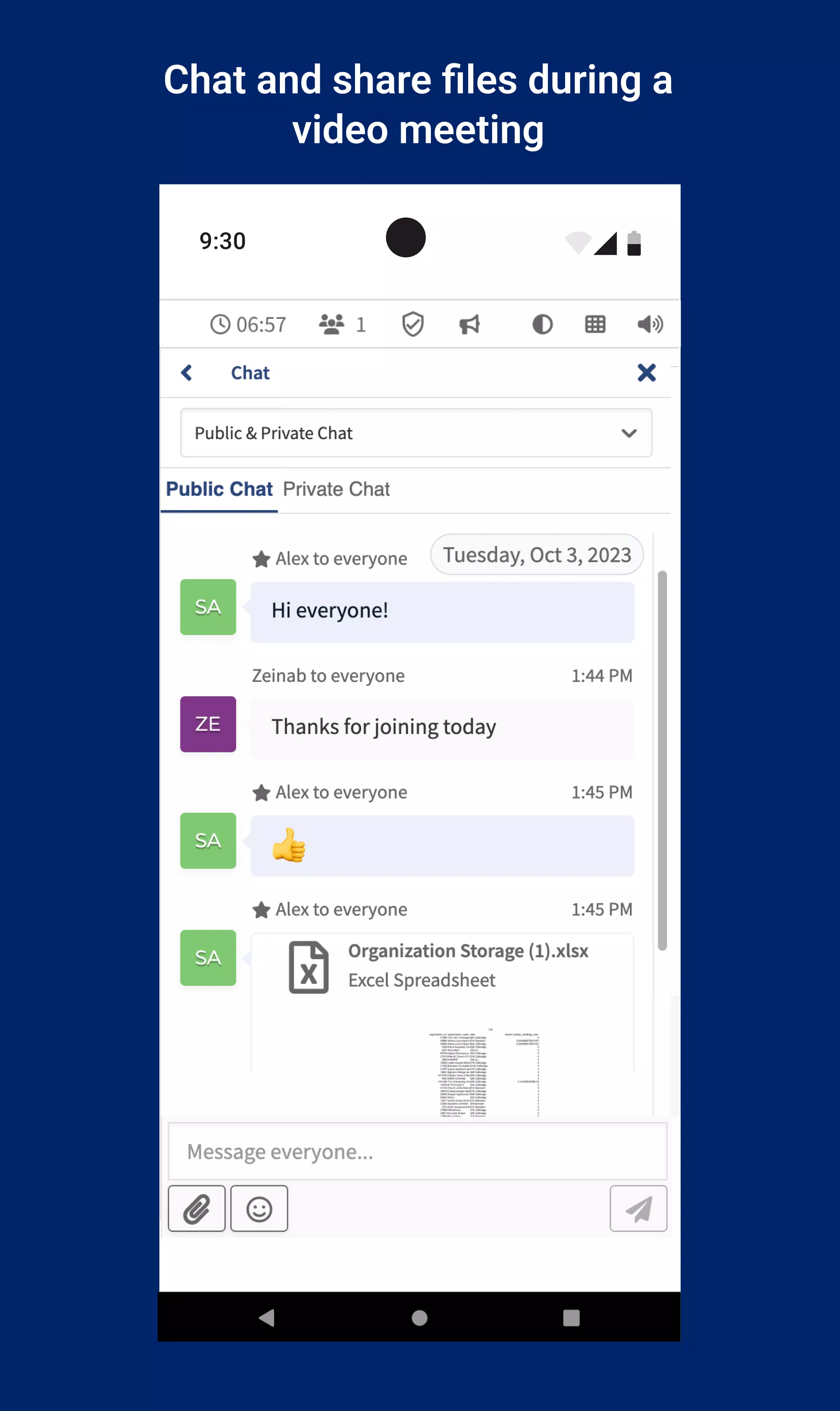 > Easily view shared files and documents, and download files uploaded to the chat window.