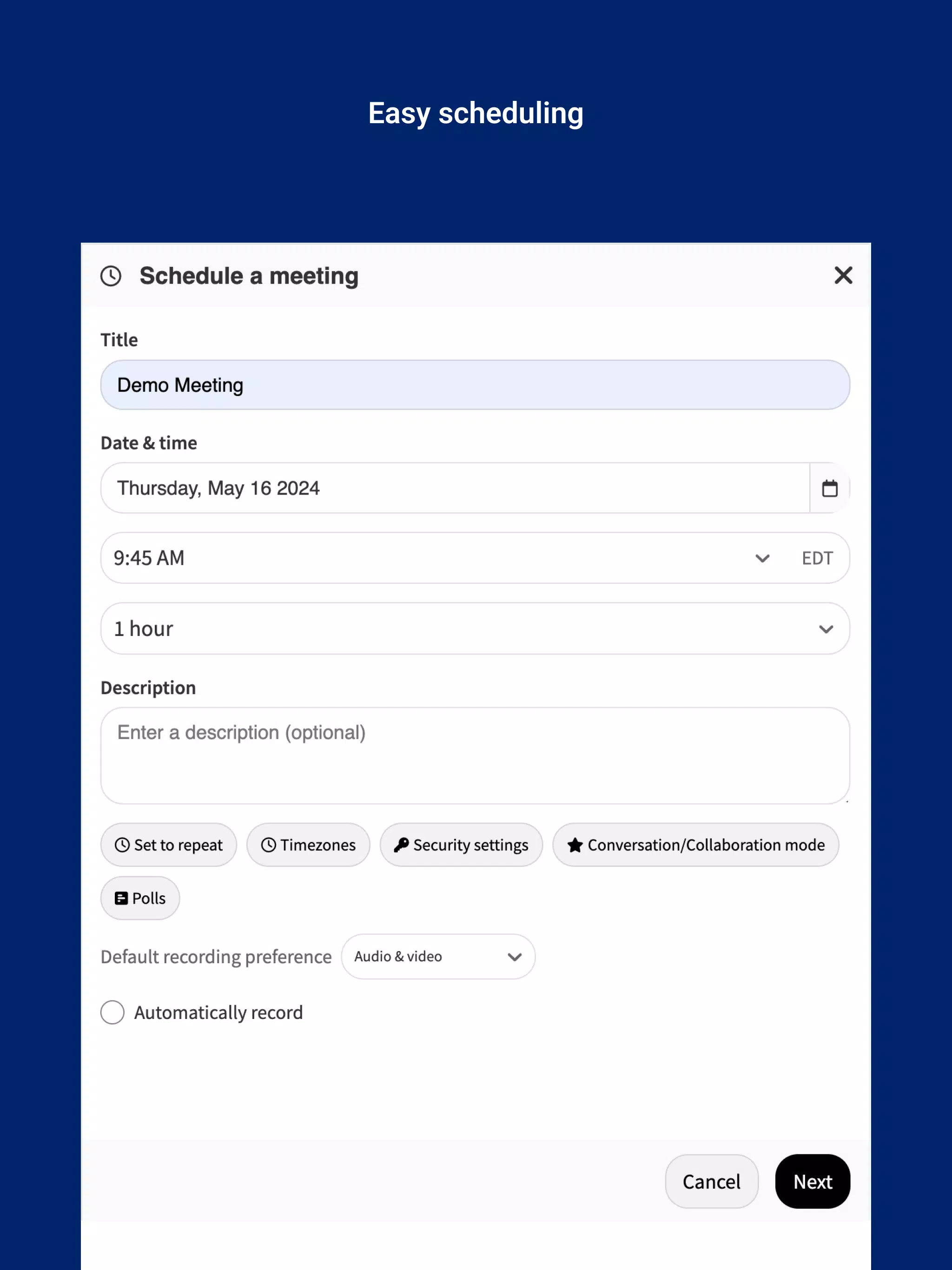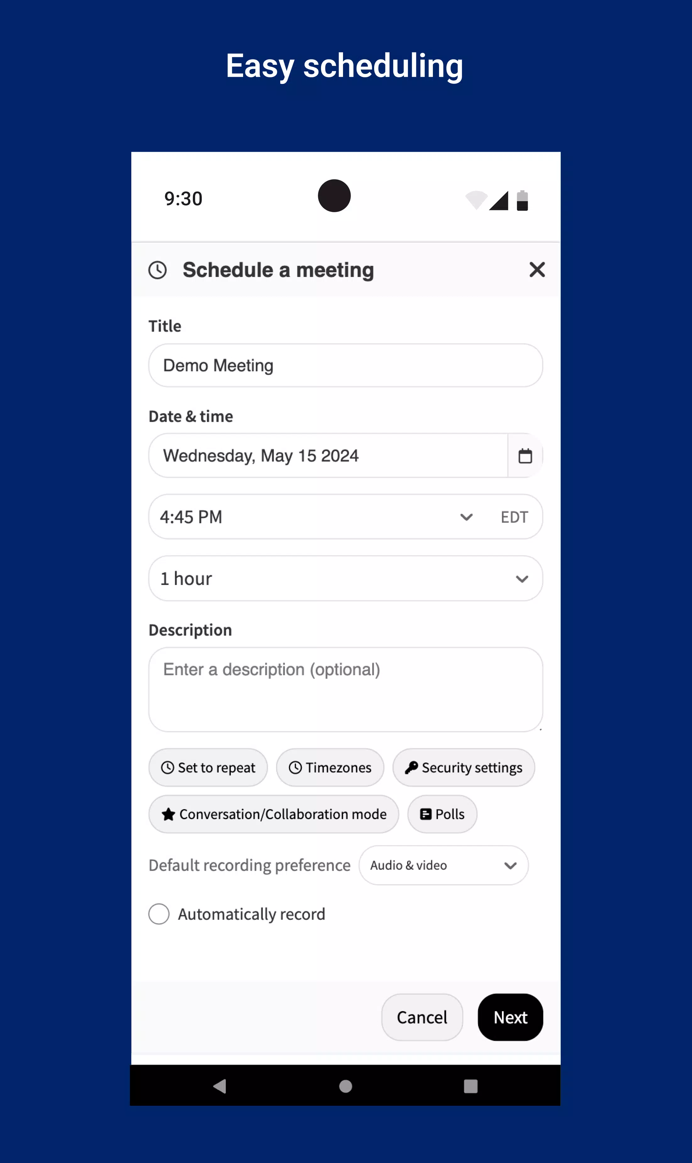 > Conduct conference calls with up to 400 callers and schedule calls on the go.