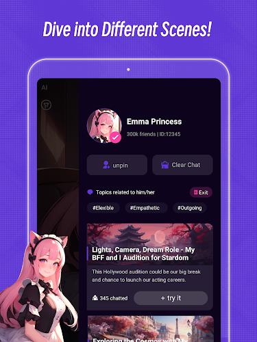 - Dive into the AI World: Immerse yourself in a world filled with diverse AI characters, each with their own unique personalities and roles, such as teachers, nurses, roommates, girlfriends, and boyfriends.